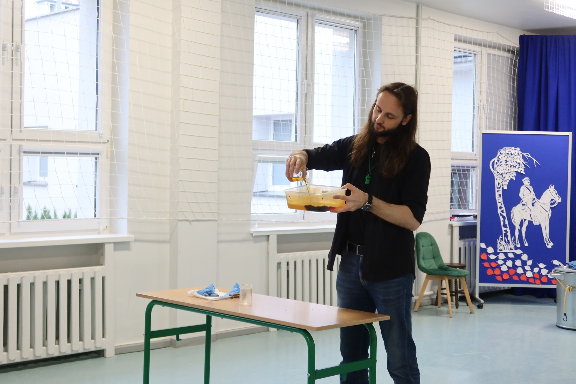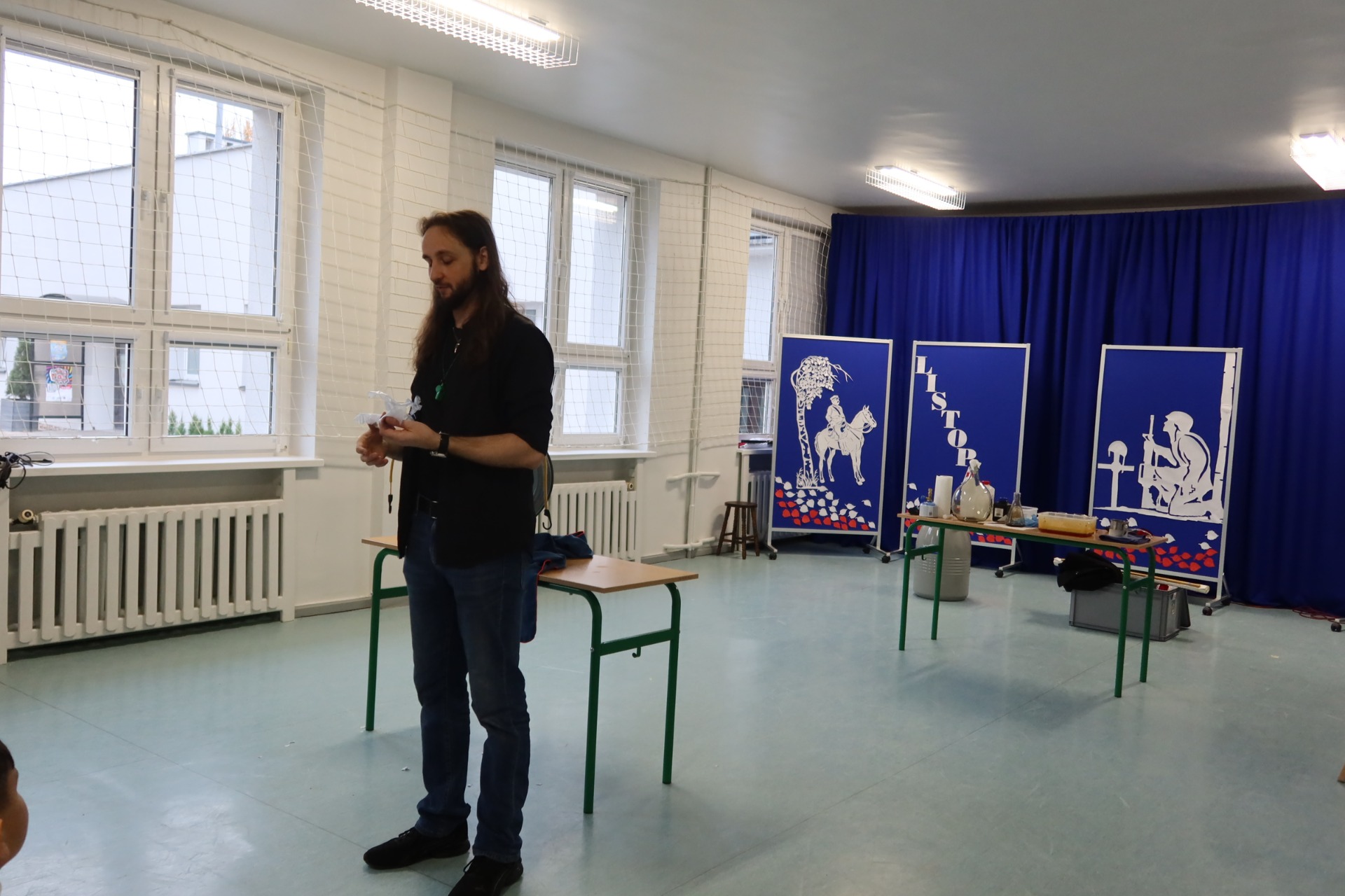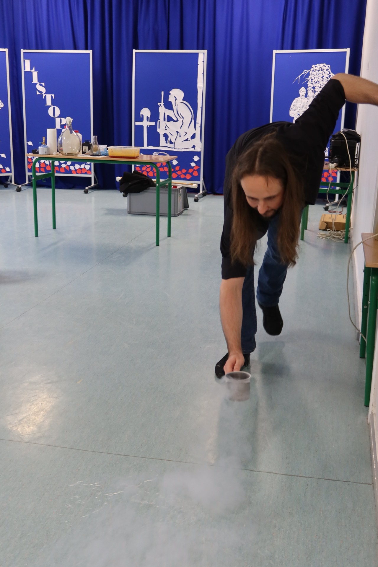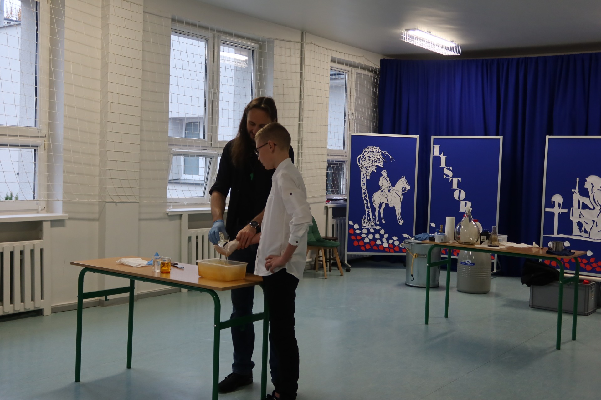 W dniu dzisiejszym uczniowie z kl. 4-8 brali udział w nietypowej lekcji przyrody w trakcie której dowiedzieli się m.in. w jaki sposób stworzyć własną chmurę, czym jest efekt krwawiącej ręki, jakie możliwości daje nam ciekły azot i wiele innych ciekawych informacji.