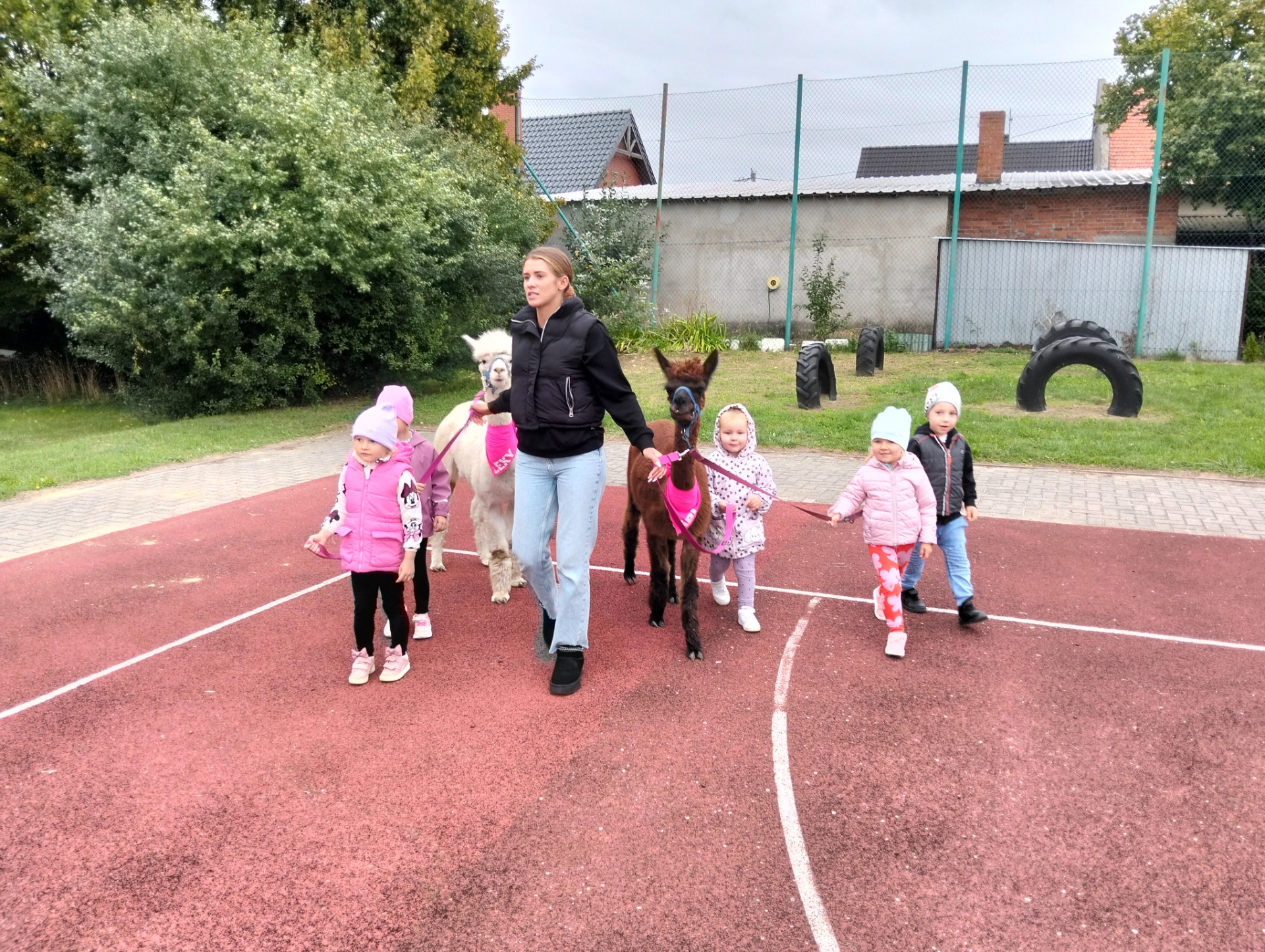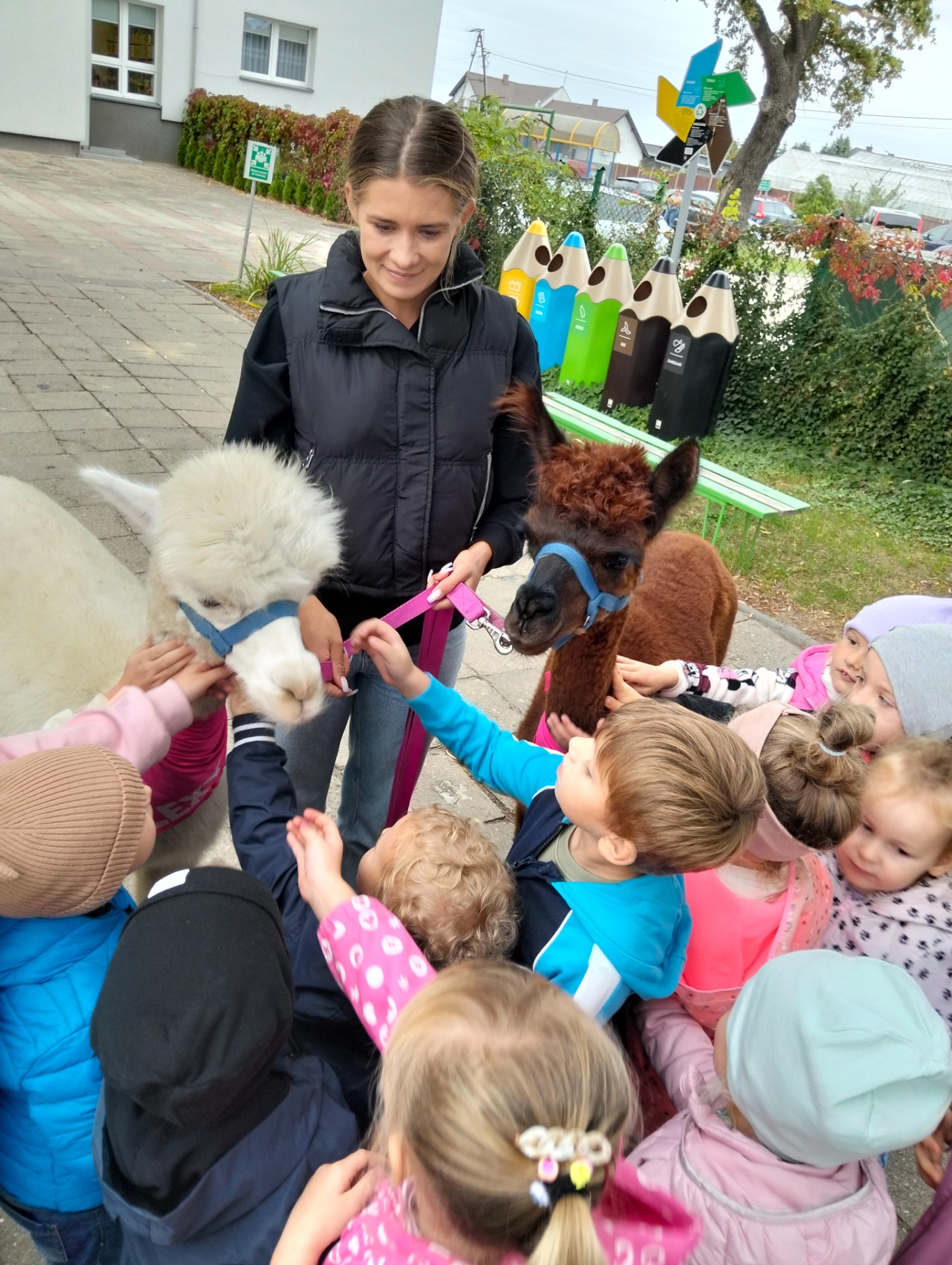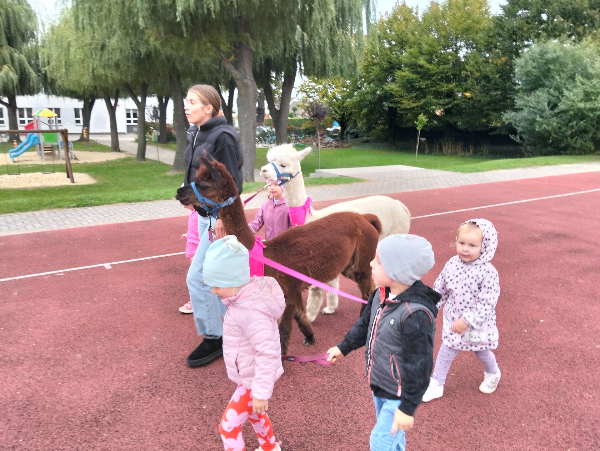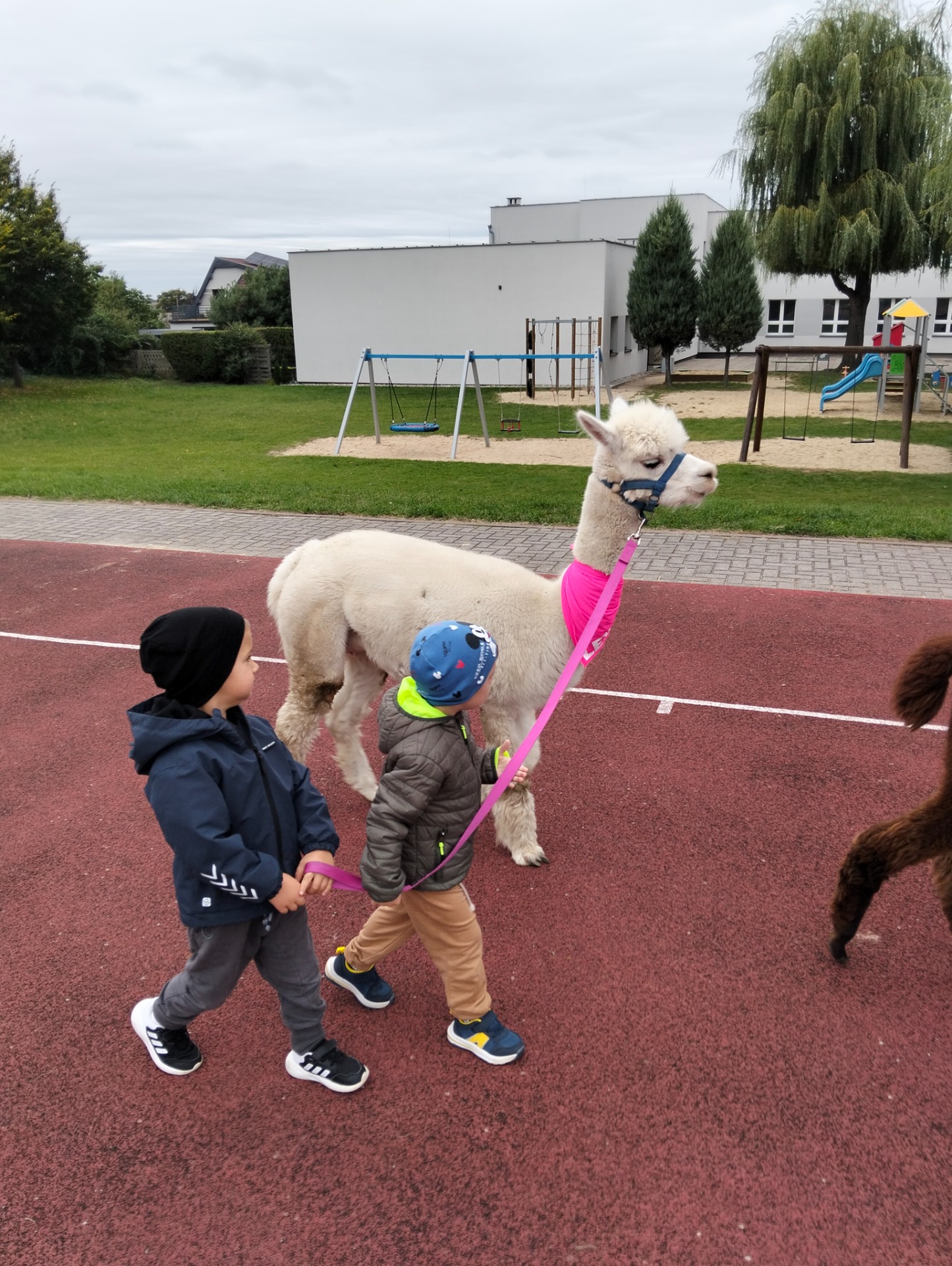 Dziś świętowaliśmy coroczny Dzień Przedszkolaka. Z tej okazji dzieci miały okazje pospacerować z Alpakami, które odwiedziły nas z pobliskiej stadniny, nakarmić je oraz pogłaskać. Zwierzęta bardzo spodobały się dzieciom. Z tej okazji dzieci zostały obdarowane kolorowymi piłkami oraz książeczkami. Bardzo dziękujemy mamie Kuby, która jako delegatka tutejszego KGW przygotowała dla dzieci watę cukrową. Był to dzień pełen uśmiechu i radości.