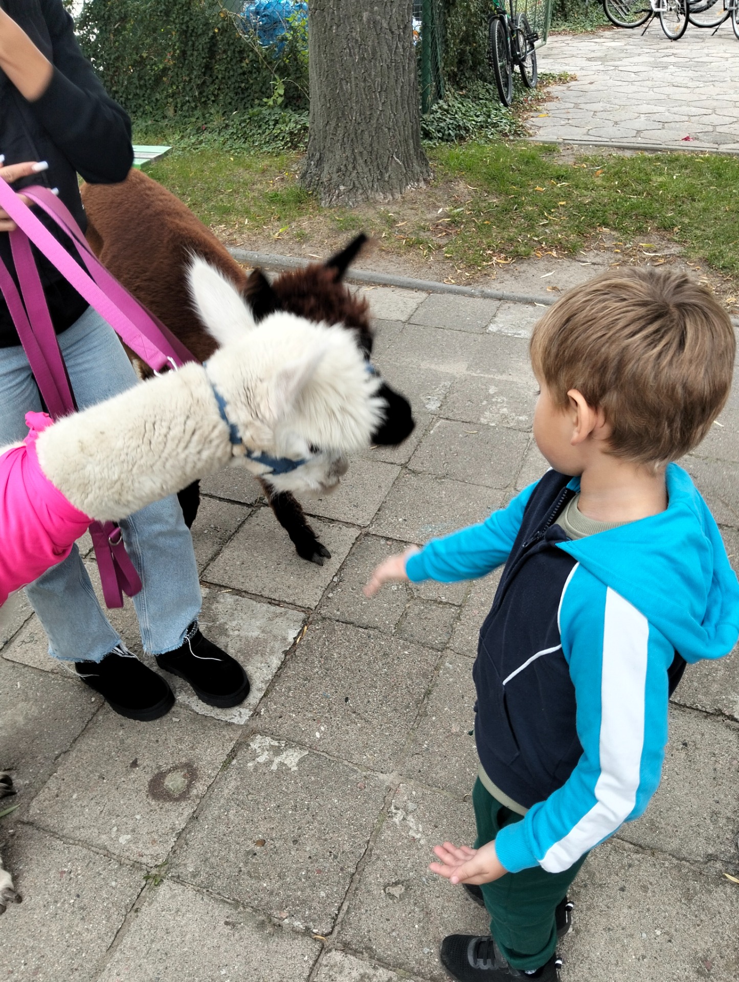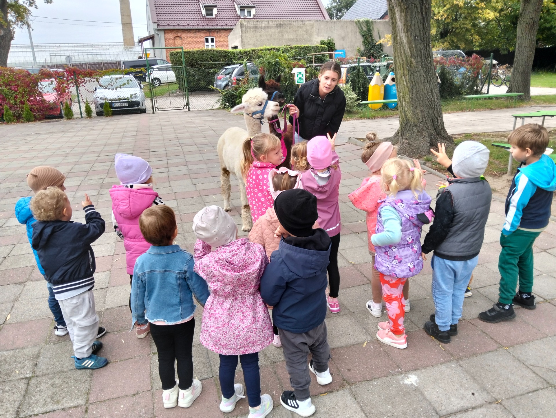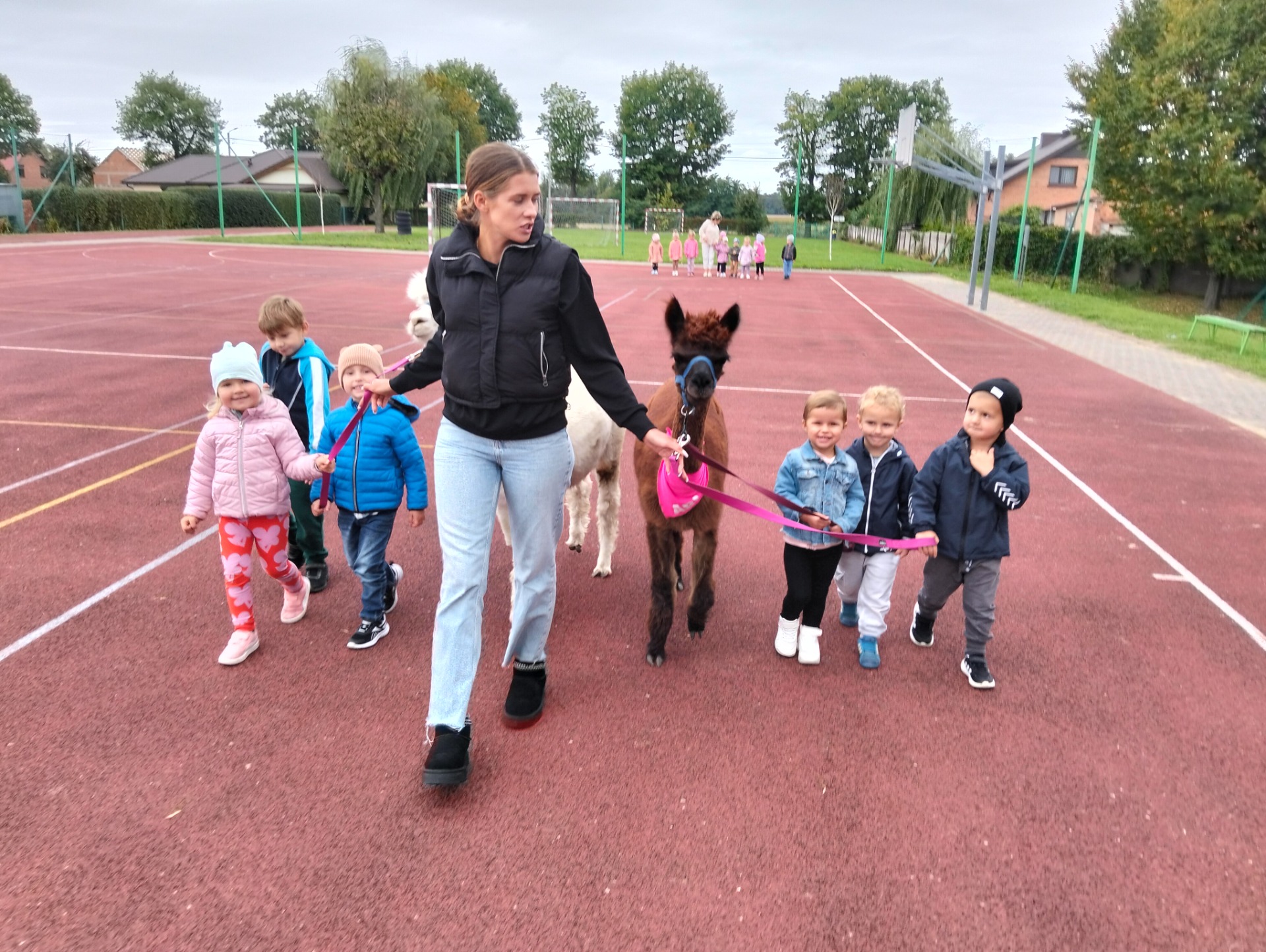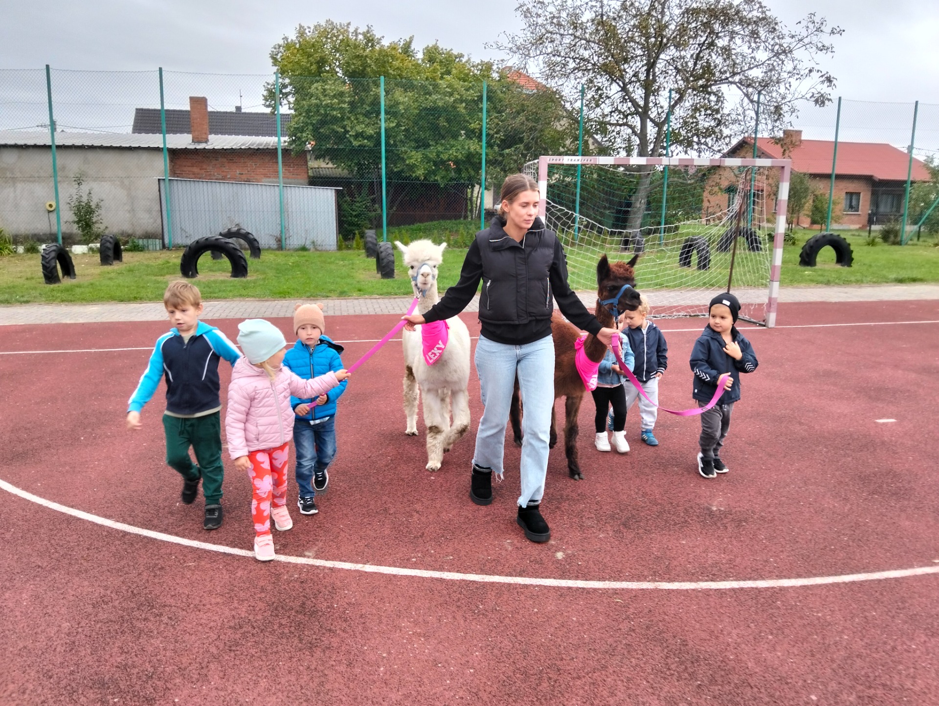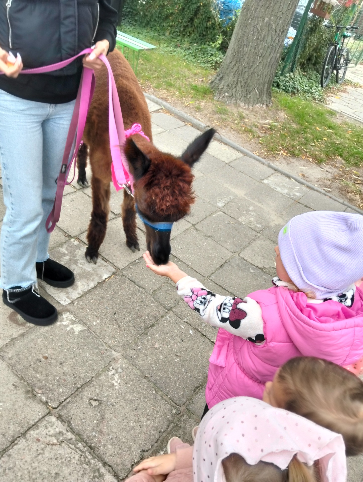 Dziś świętowaliśmy coroczny Dzień Przedszkolaka. Z tej okazji dzieci miały okazje pospacerować z Alpakami, które odwiedziły nas z pobliskiej stadniny, nakarmić je oraz pogłaskać. Zwierzęta bardzo spodobały się dzieciom. Z tej okazji dzieci zostały obdarowane kolorowymi piłkami oraz książeczkami. Bardzo dziękujemy mamie Kuby, która jako delegatka tutejszego KGW przygotowała dla dzieci watę cukrową. Był to dzień pełen uśmiechu i radości.