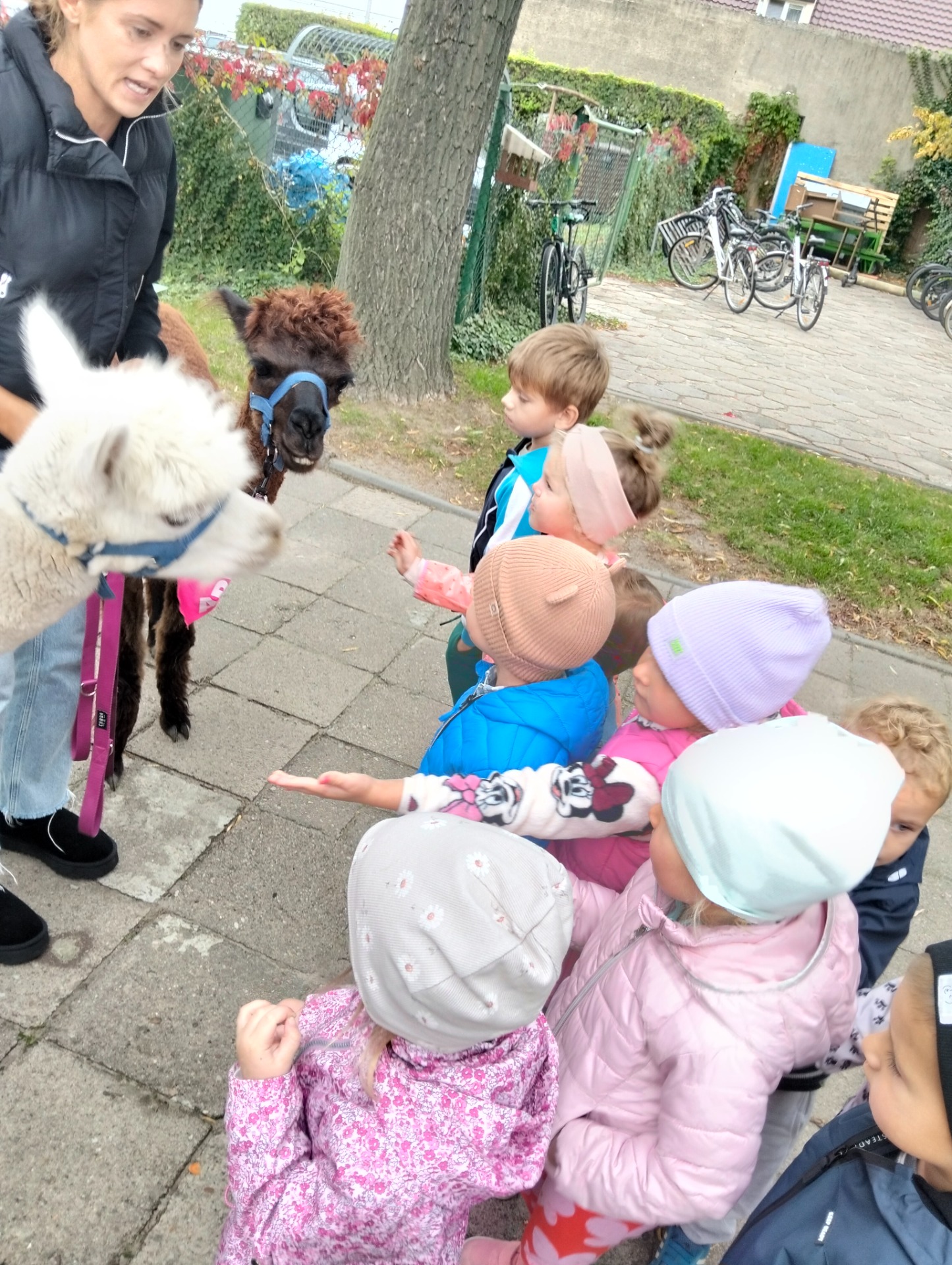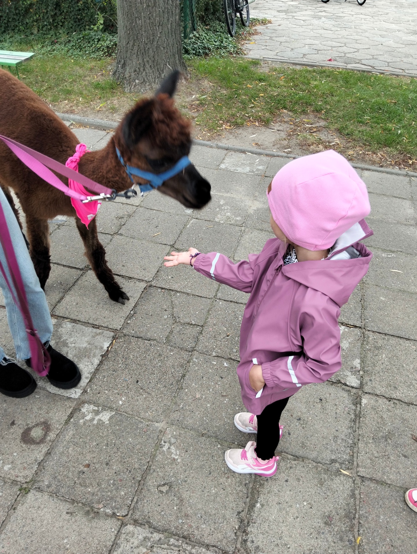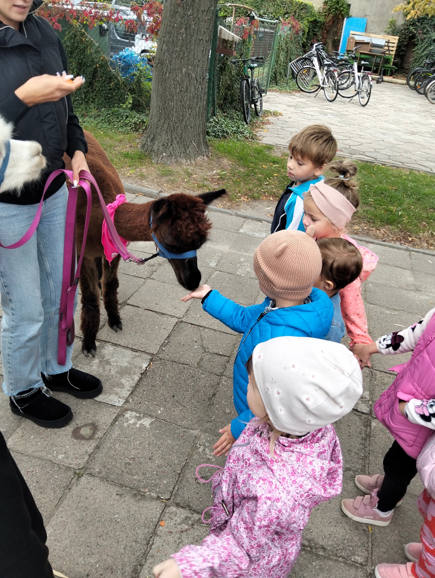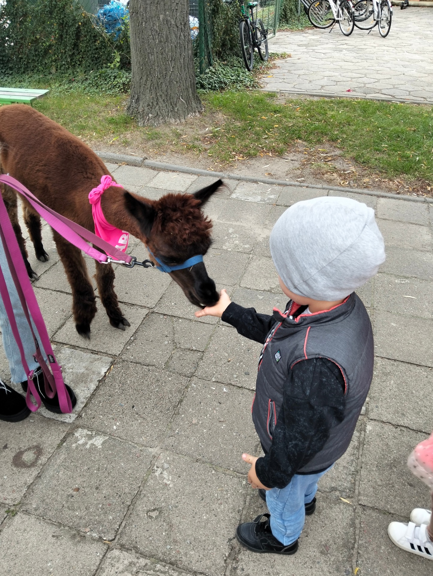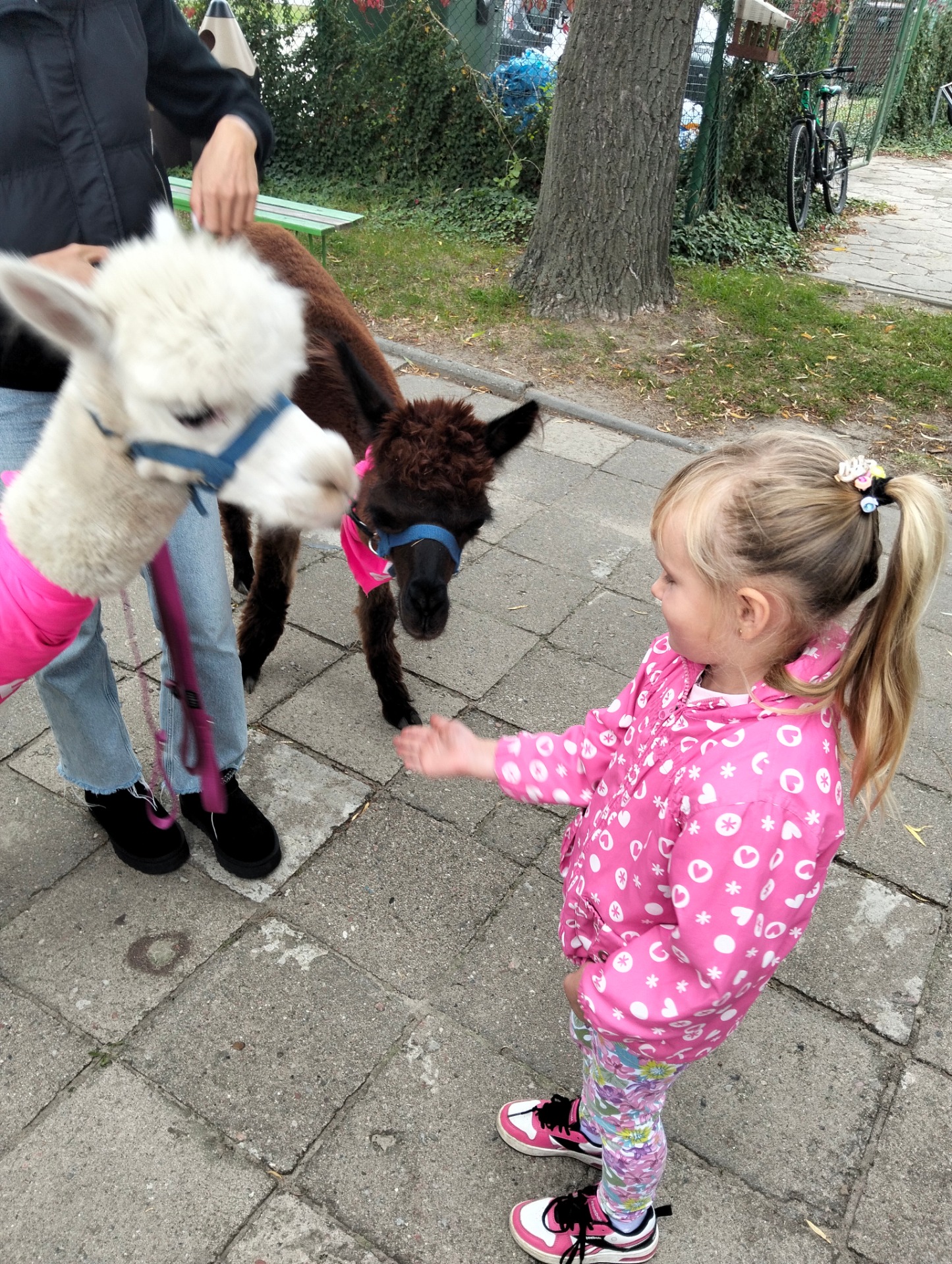 Dziś świętowaliśmy coroczny Dzień Przedszkolaka. Z tej okazji dzieci miały okazje pospacerować z Alpakami, które odwiedziły nas z pobliskiej stadniny, nakarmić je oraz pogłaskać. Zwierzęta bardzo spodobały się dzieciom. Z tej okazji dzieci zostały obdarowane kolorowymi piłkami oraz książeczkami. Bardzo dziękujemy mamie Kuby, która jako delegatka tutejszego KGW przygotowała dla dzieci watę cukrową. Był to dzień pełen uśmiechu i radości.
