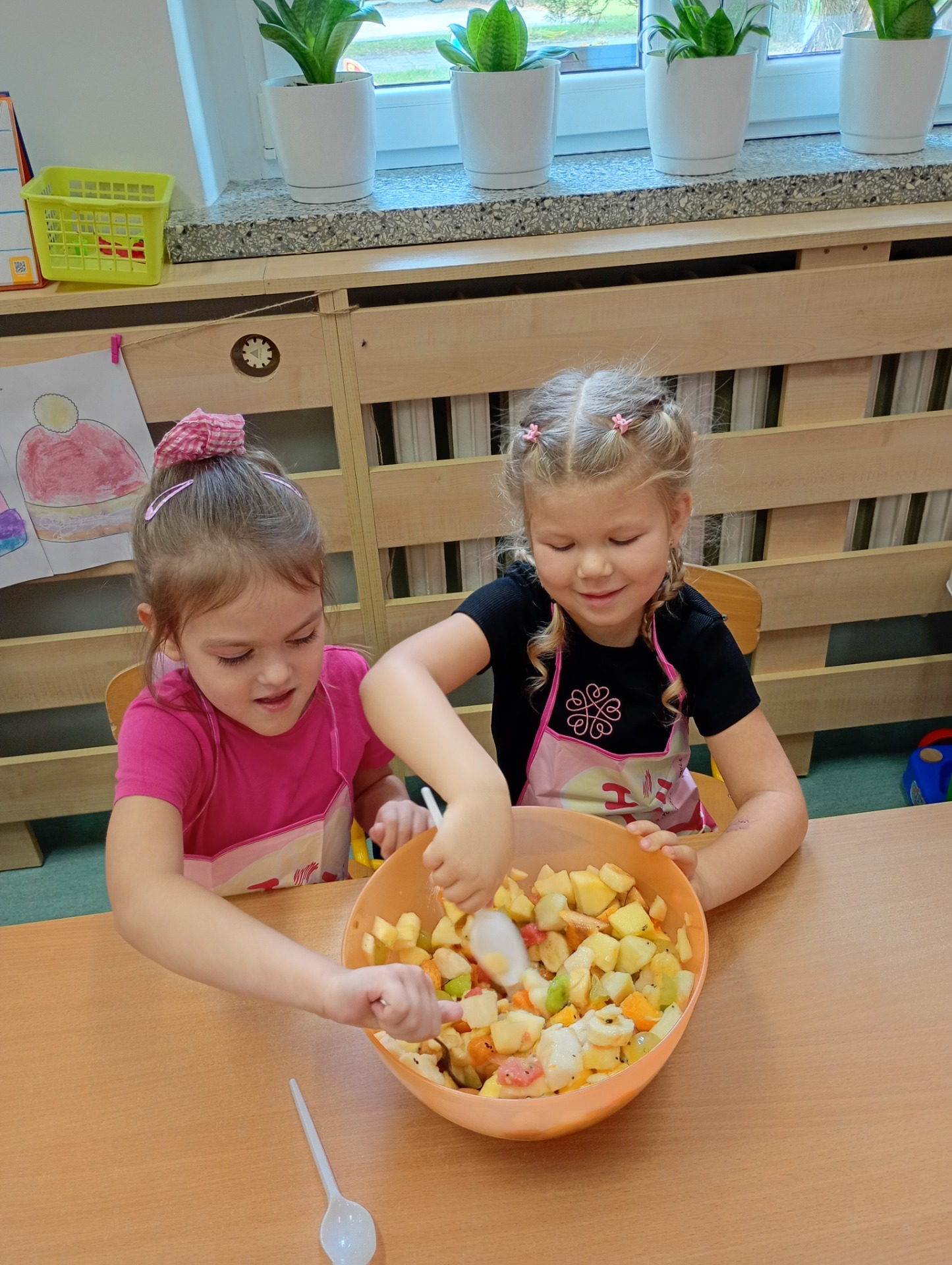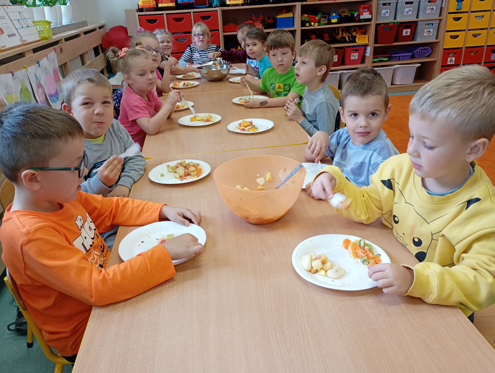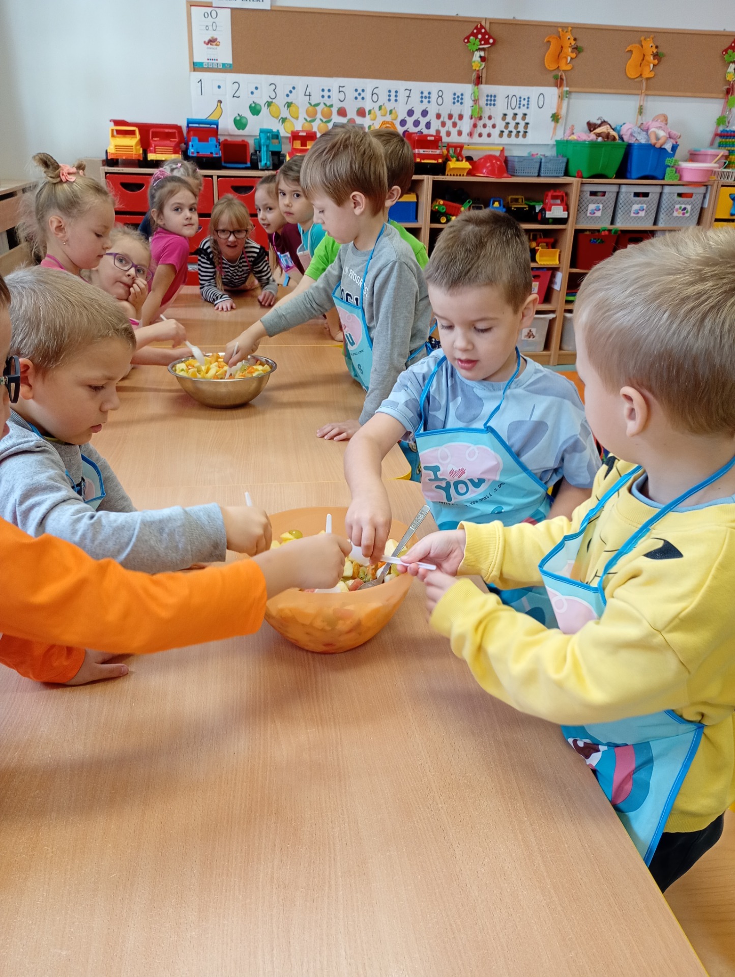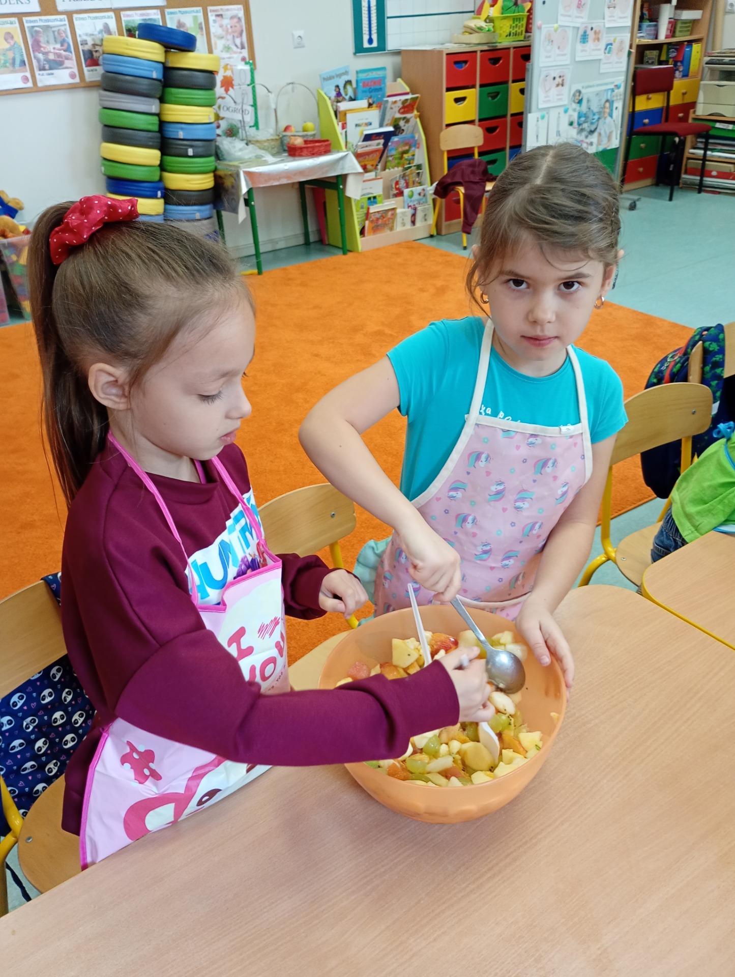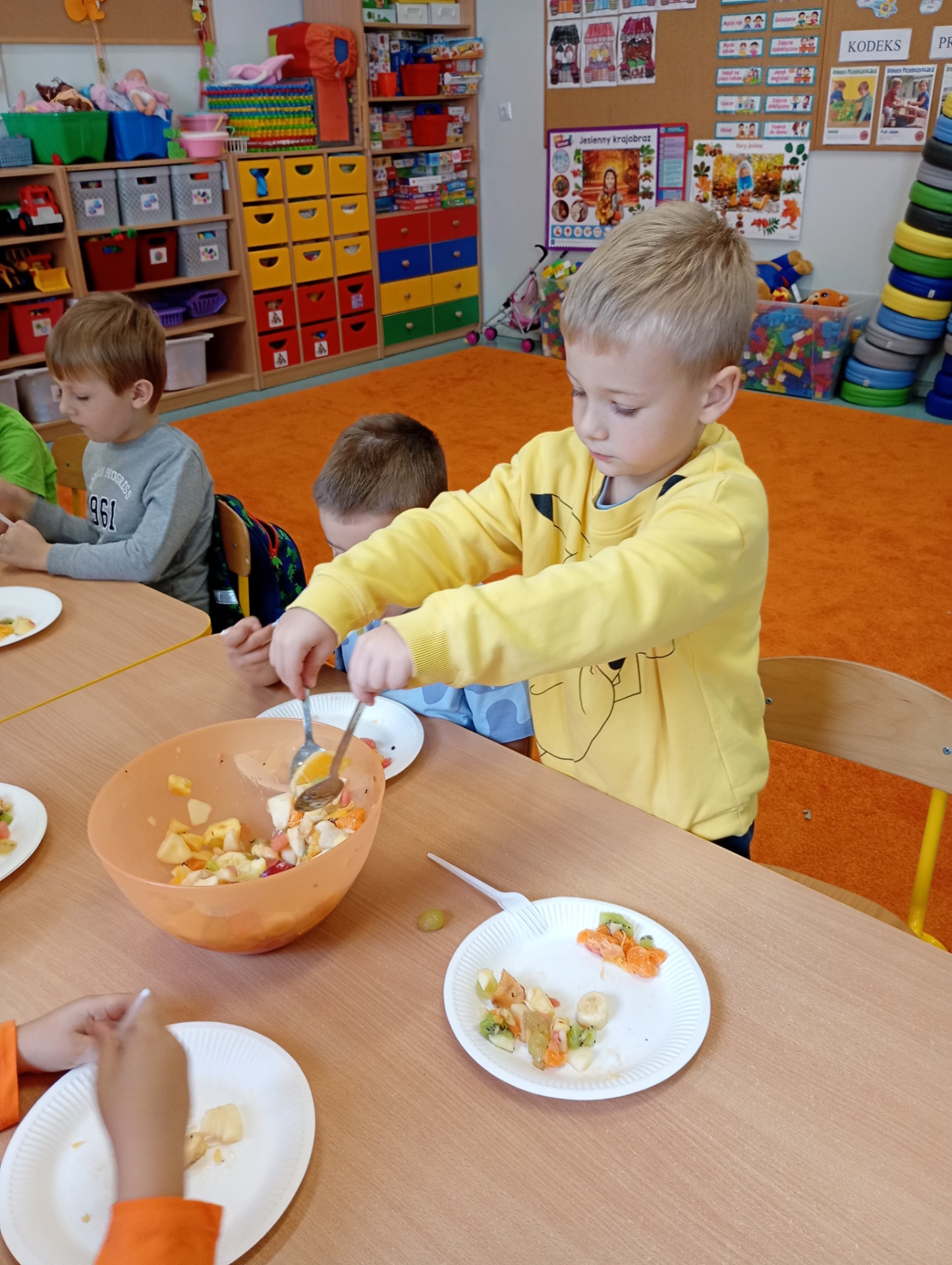 Przygotowywanie sa艂atki by艂o nie tylko 艣wietn膮 zabaw膮, ale tak偶e okazj膮 do rozmów o zdrowym od偶ywianiu oraz 膰wiczeniem samodzielno艣ci. Na zako艅czenie odby艂a si臋 degustacja, podczas której wszyscy z apetytem zajadali przygotowane smako艂yki. 馃崐馃崜馃崘