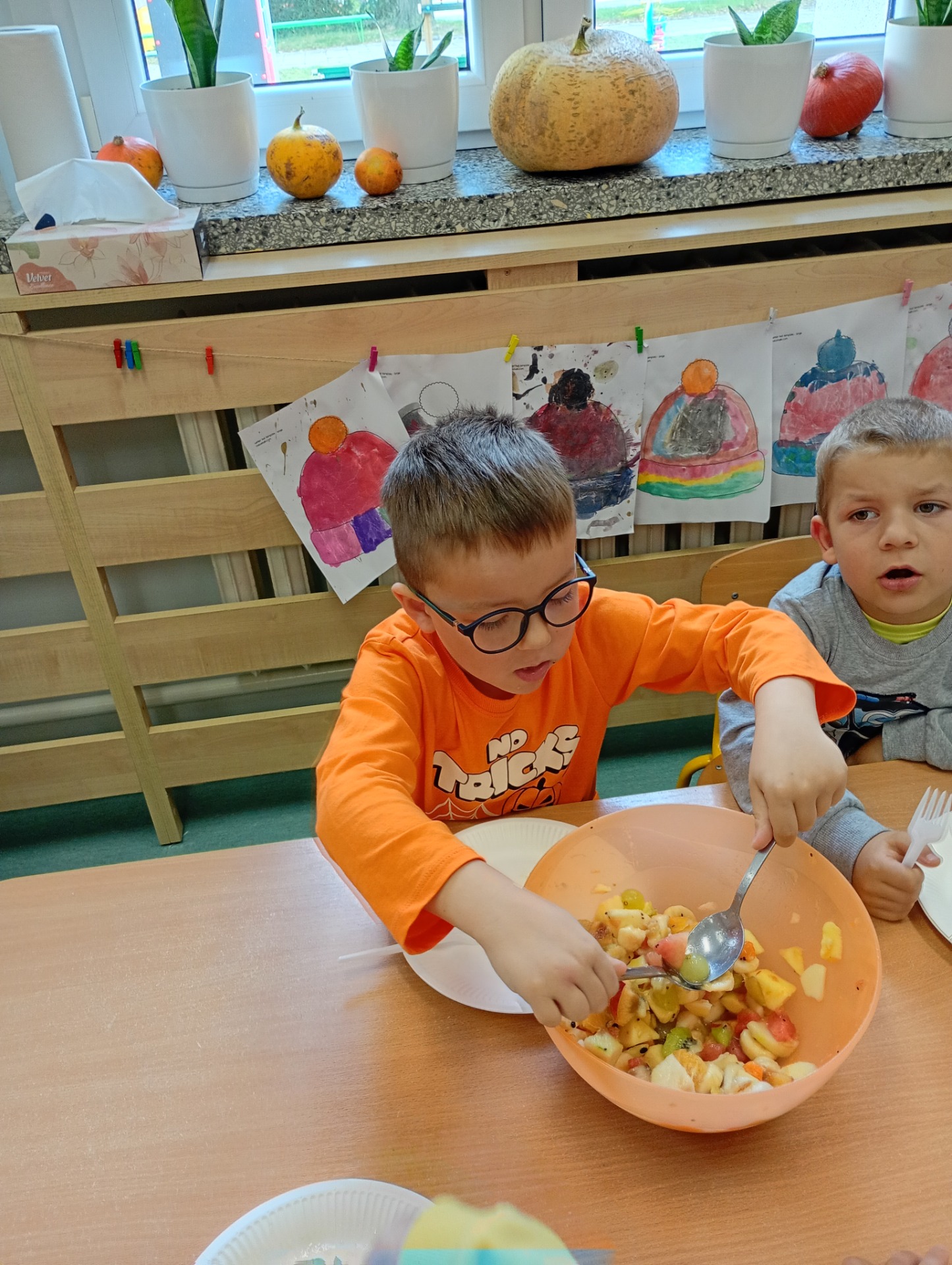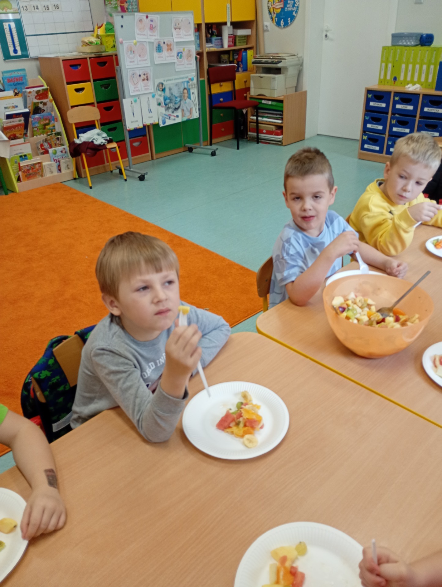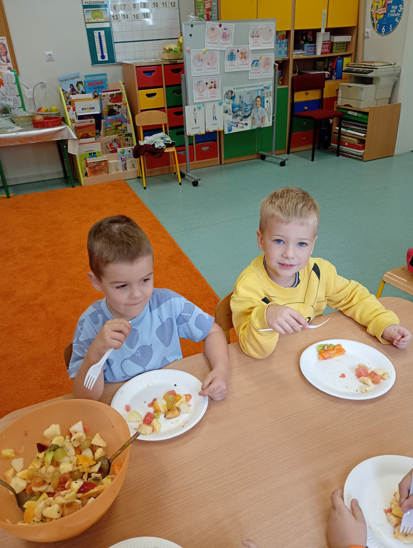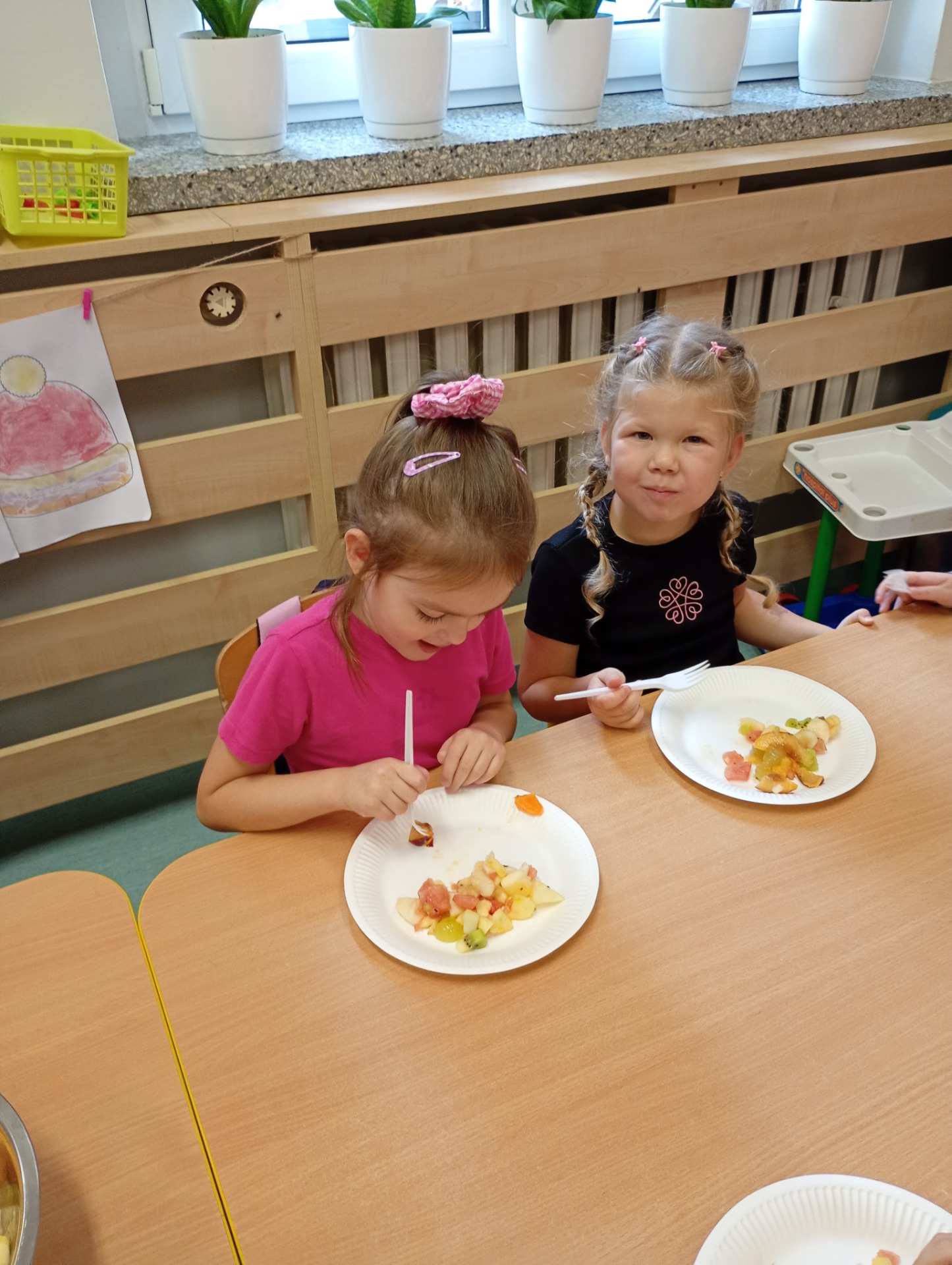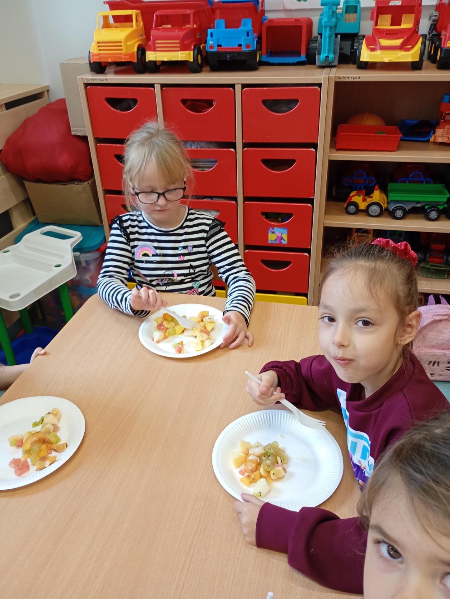 Przygotowywanie sa艂atki by艂o nie tylko 艣wietn膮 zabaw膮, ale tak偶e okazj膮 do rozmów o zdrowym od偶ywianiu oraz 膰wiczeniem samodzielno艣ci. Na zako艅czenie odby艂a si臋 degustacja, podczas której wszyscy z apetytem zajadali przygotowane smako艂yki. 馃崐馃崜馃崘