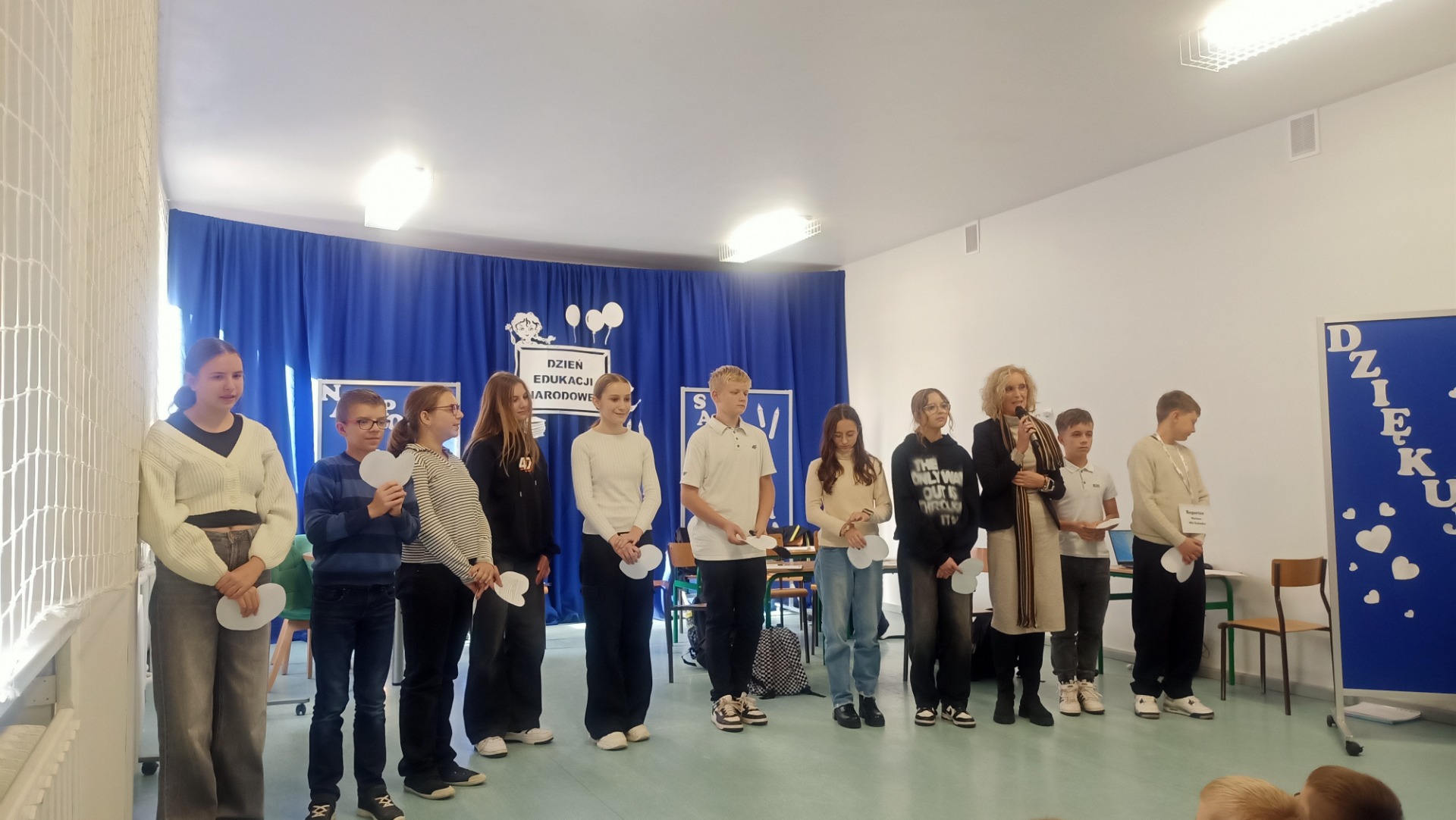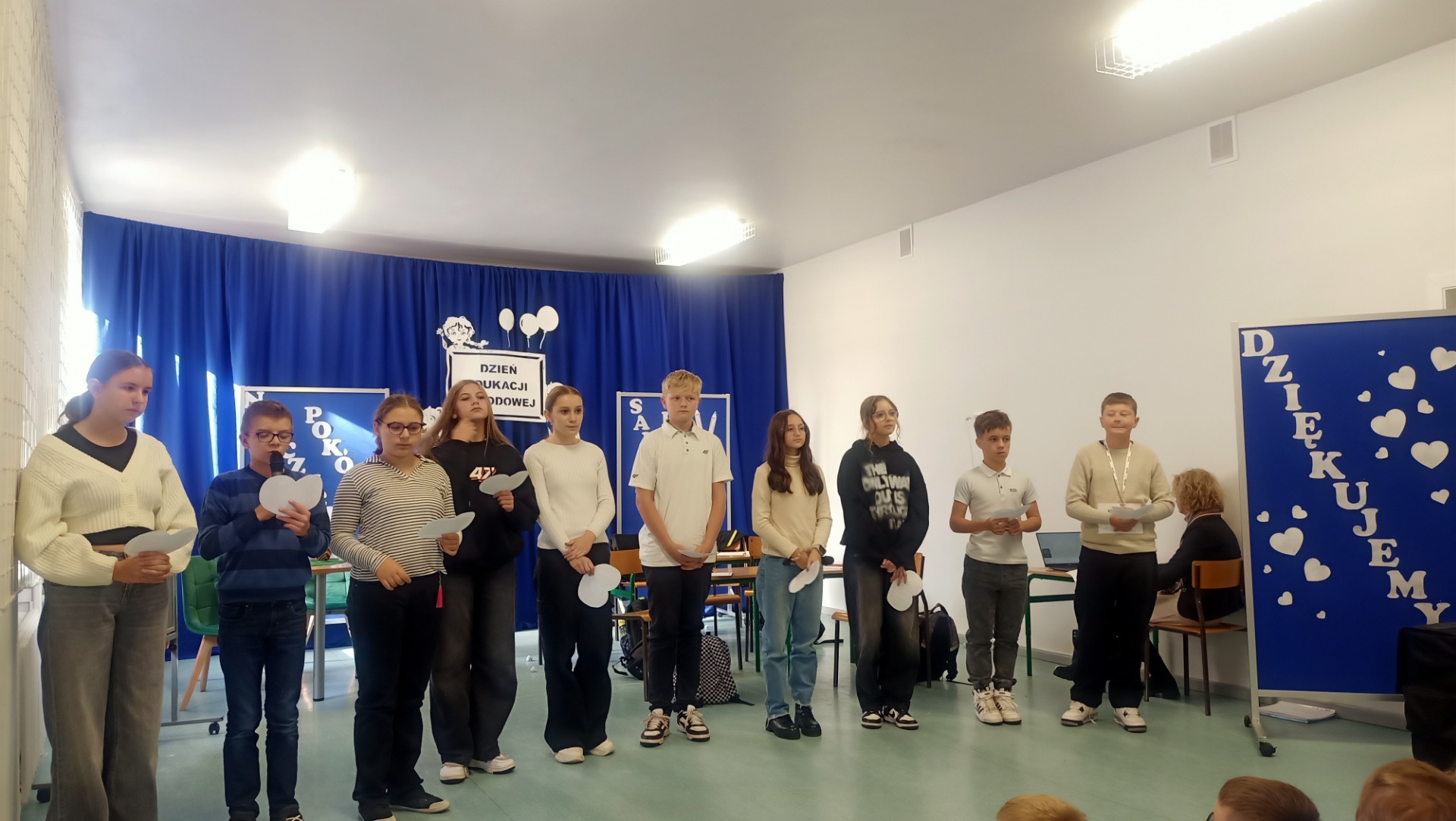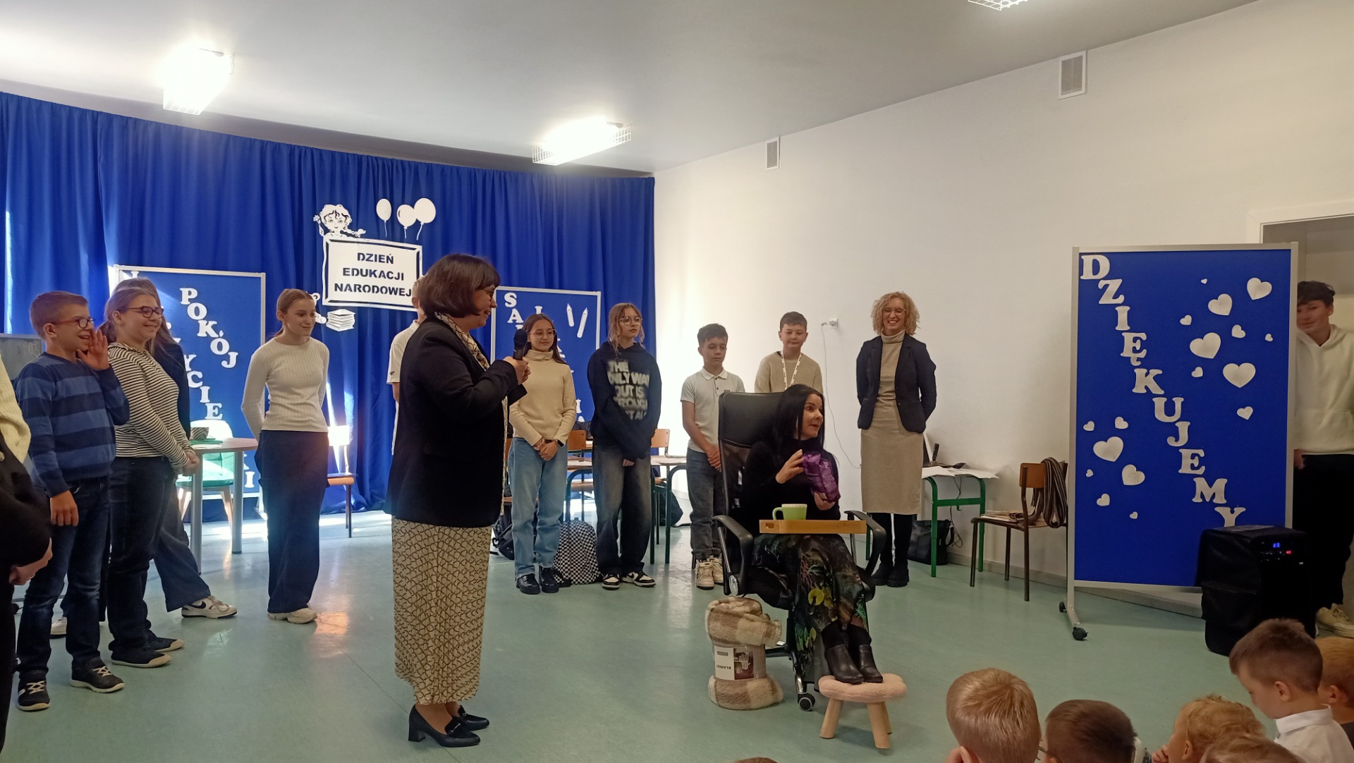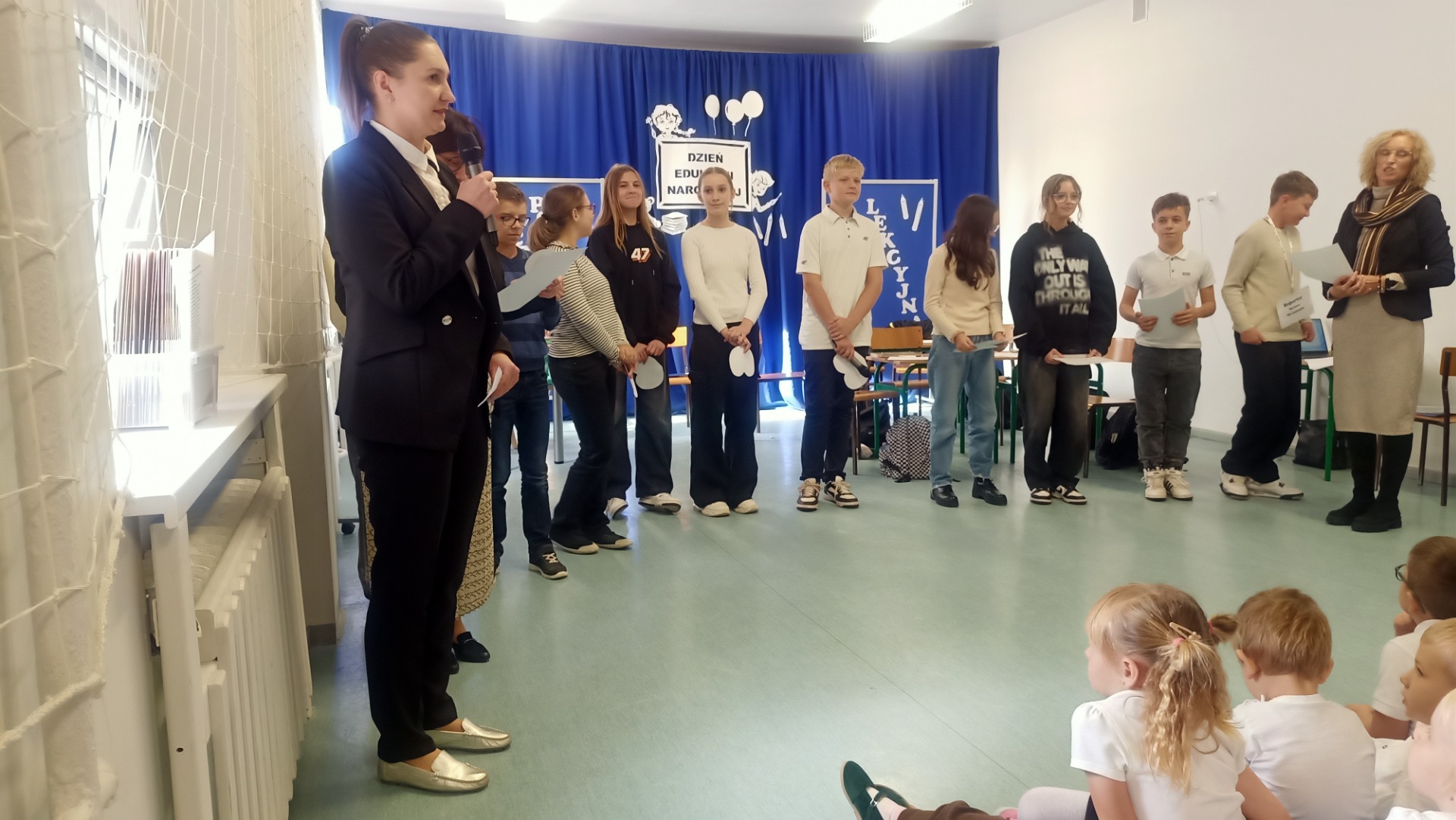 13 października uczciliśmy niezwykle ważny dzień - Dzień Edukacji Narodowej. Wśród żartów i zabawnych piosenek, znalazły się też serdeczne podziękowania dla wszystkich pracowników szkoły, bo dzięki nim uczniowie mają możliwość nie tylko zdobywać wiedzę i umiejętności, ale też bezpiecznie spędzać czas i nawiązywać przyjaźnie. Przy tak wyjątkowej okazji pożegnaliśmy panią Monikę Horzowską i życzyliśmy jej odpoczynku na zasłużonej emeryturze.