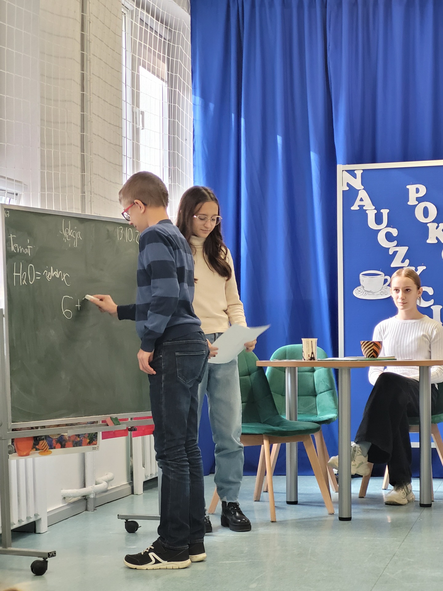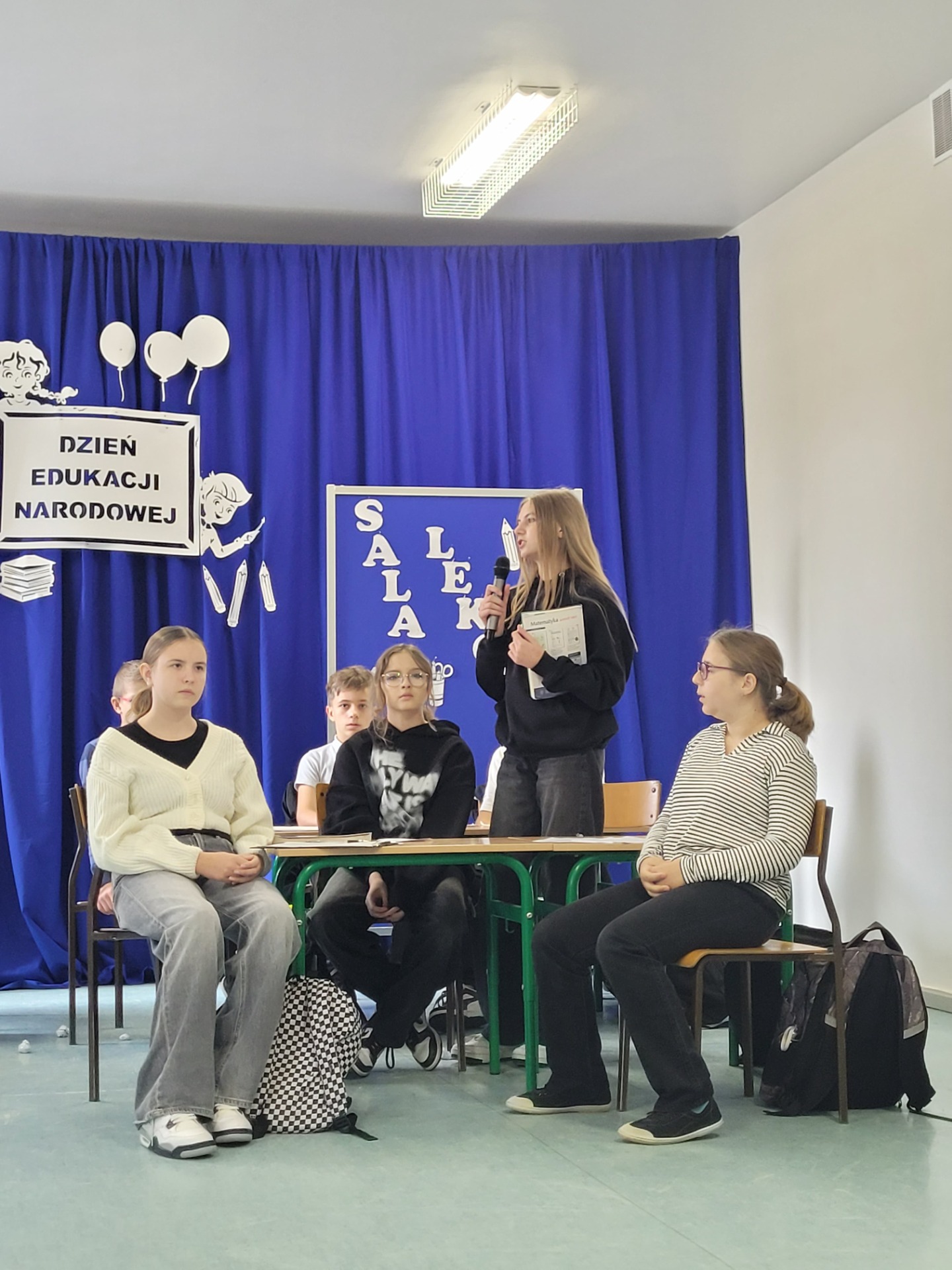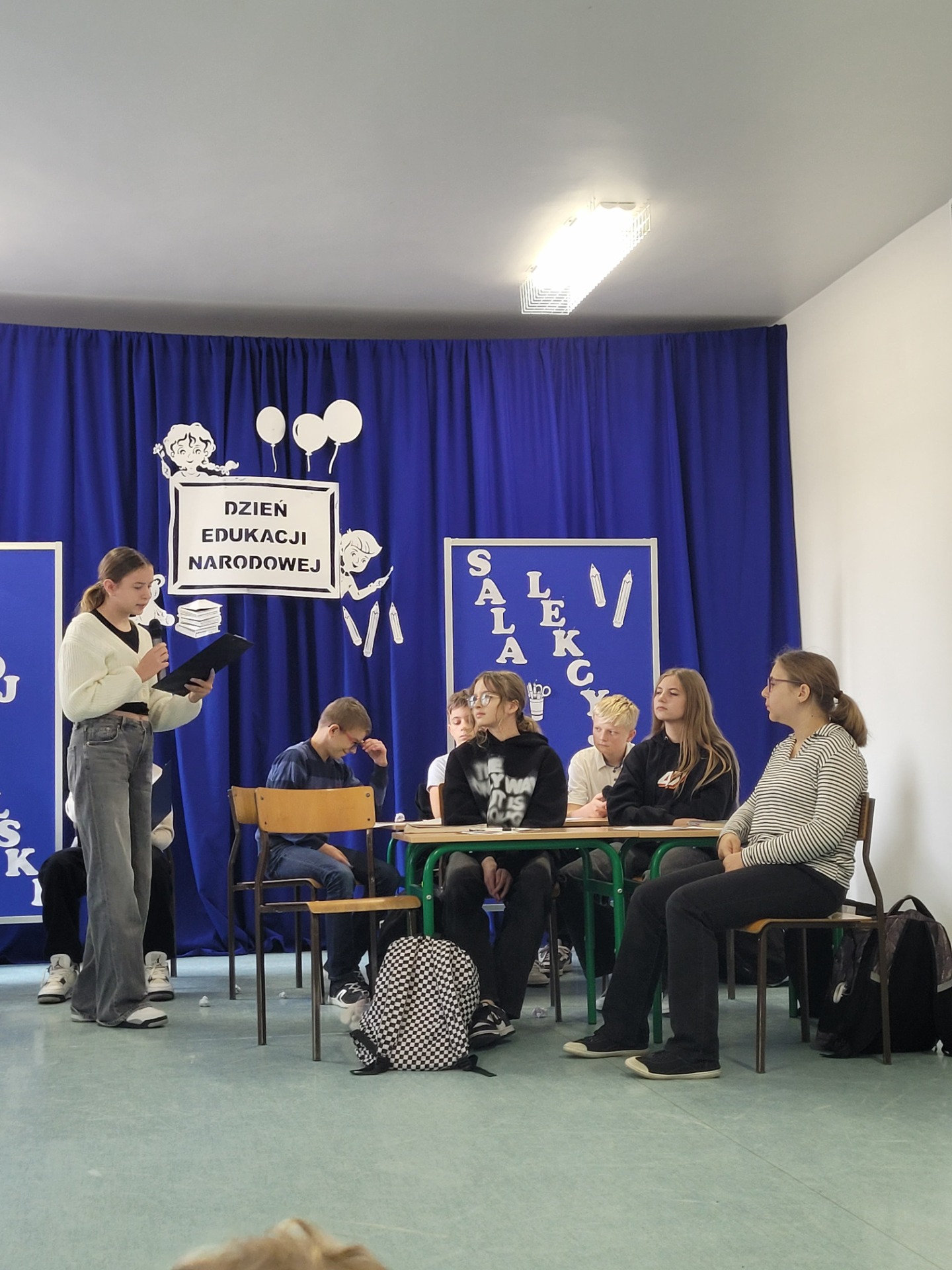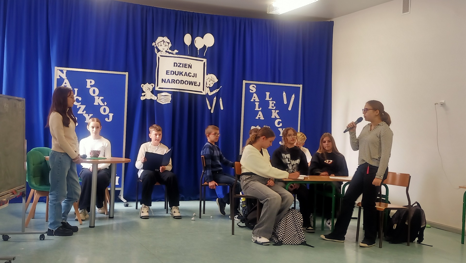 13 października uczciliśmy niezwykle ważny dzień - Dzień Edukacji Narodowej. Wśród żartów i zabawnych piosenek, znalazły się też serdeczne podziękowania dla wszystkich pracowników szkoły, bo dzięki nim uczniowie mają możliwość nie tylko zdobywać wiedzę i umiejętności, ale też bezpiecznie spędzać czas i nawiązywać przyjaźnie. Przy tak wyjątkowej okazji pożegnaliśmy panią Monikę Horzowską i życzyliśmy jej odpoczynku na zasłużonej emeryturze.