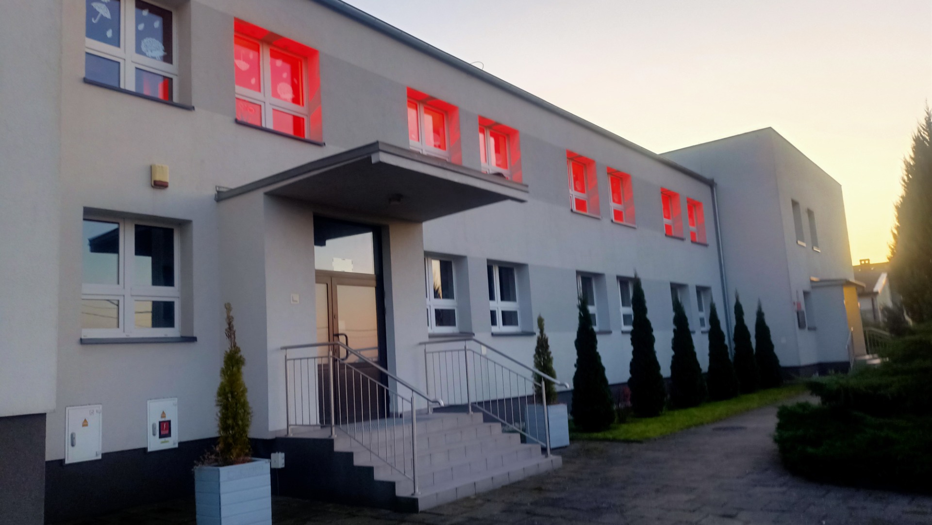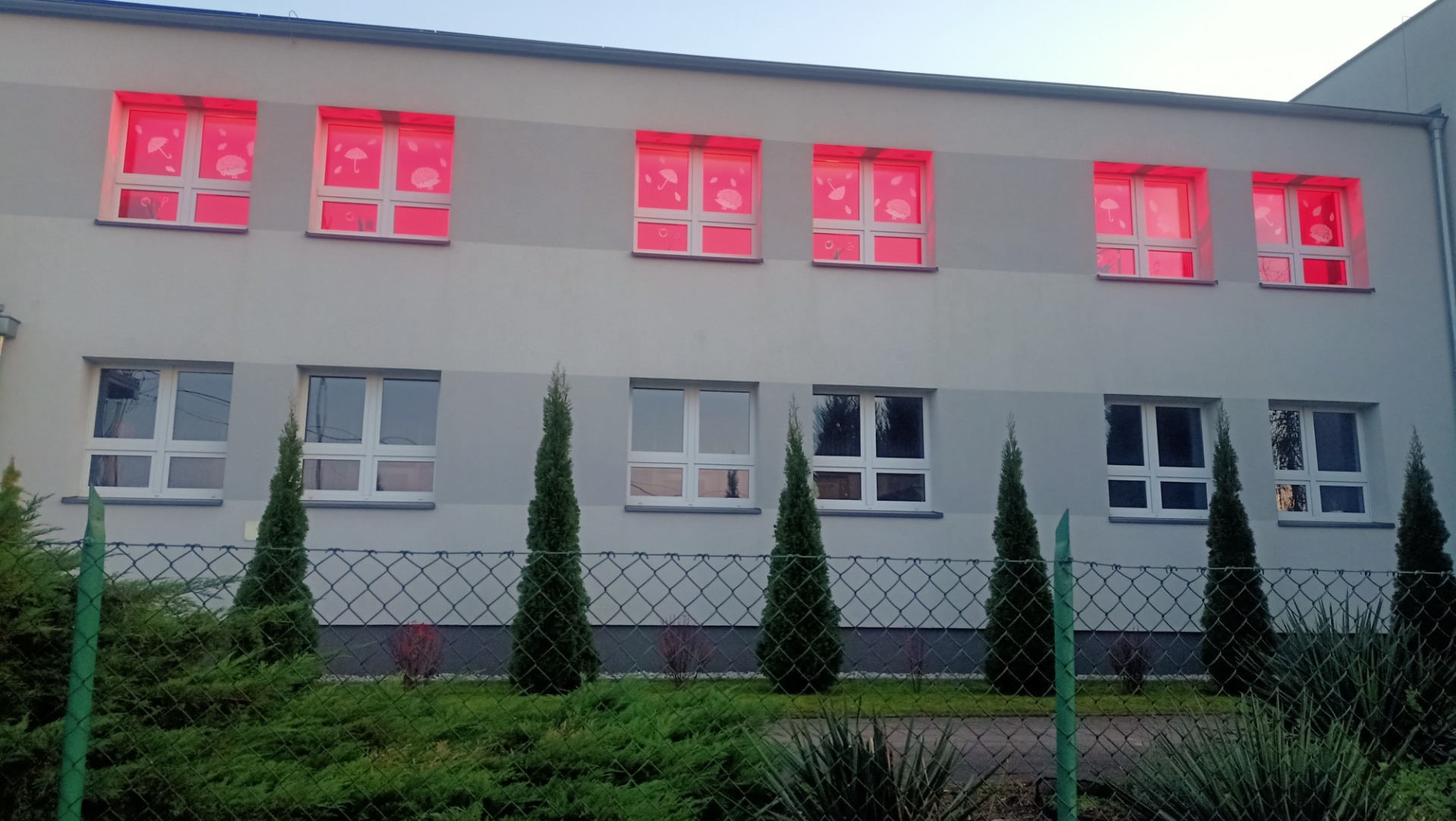 Również nasza szkoła została symbolicznie podświetlona na czerwono
