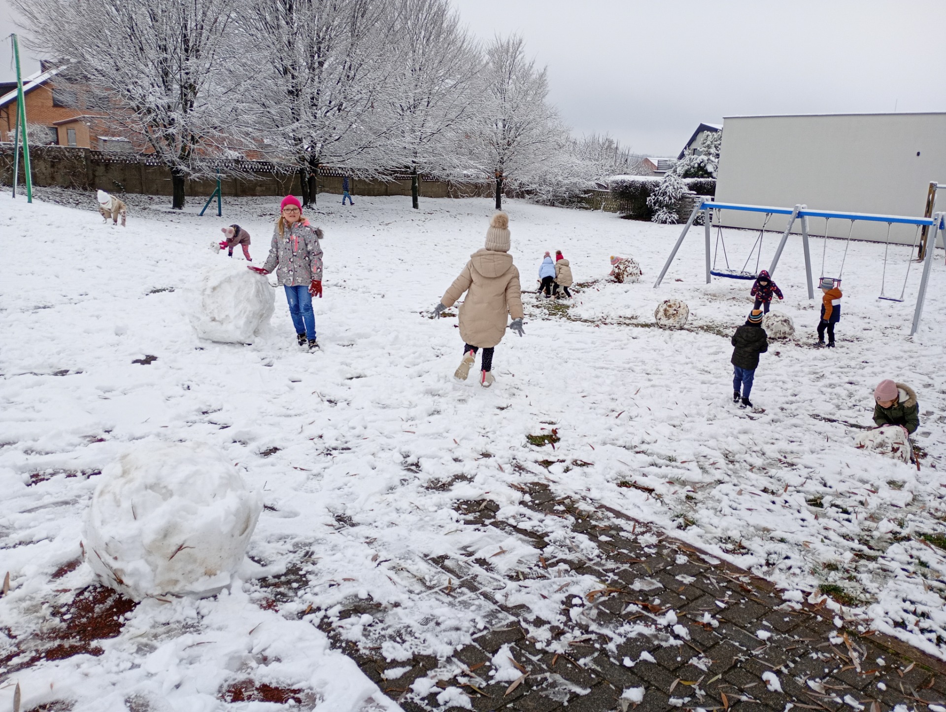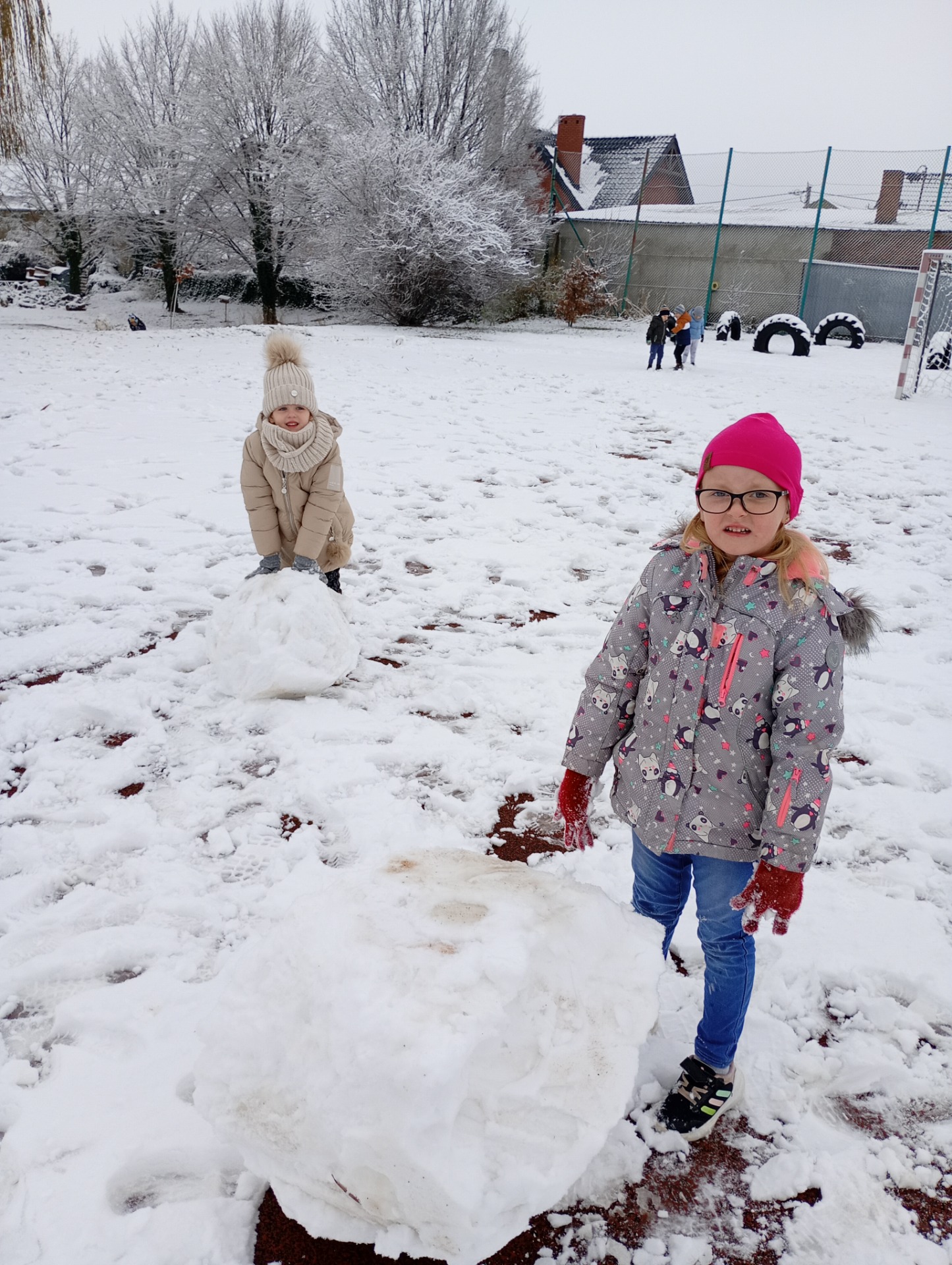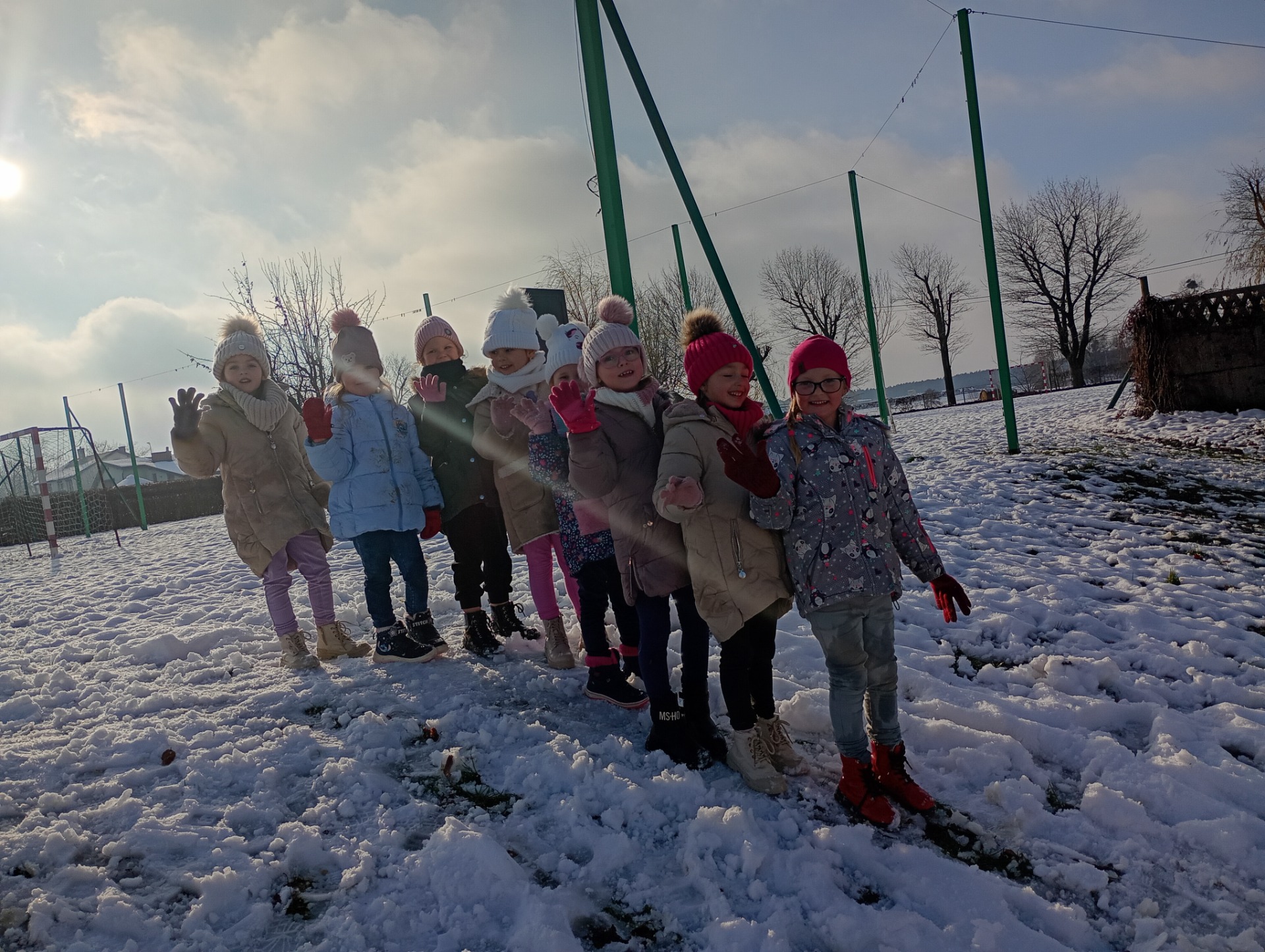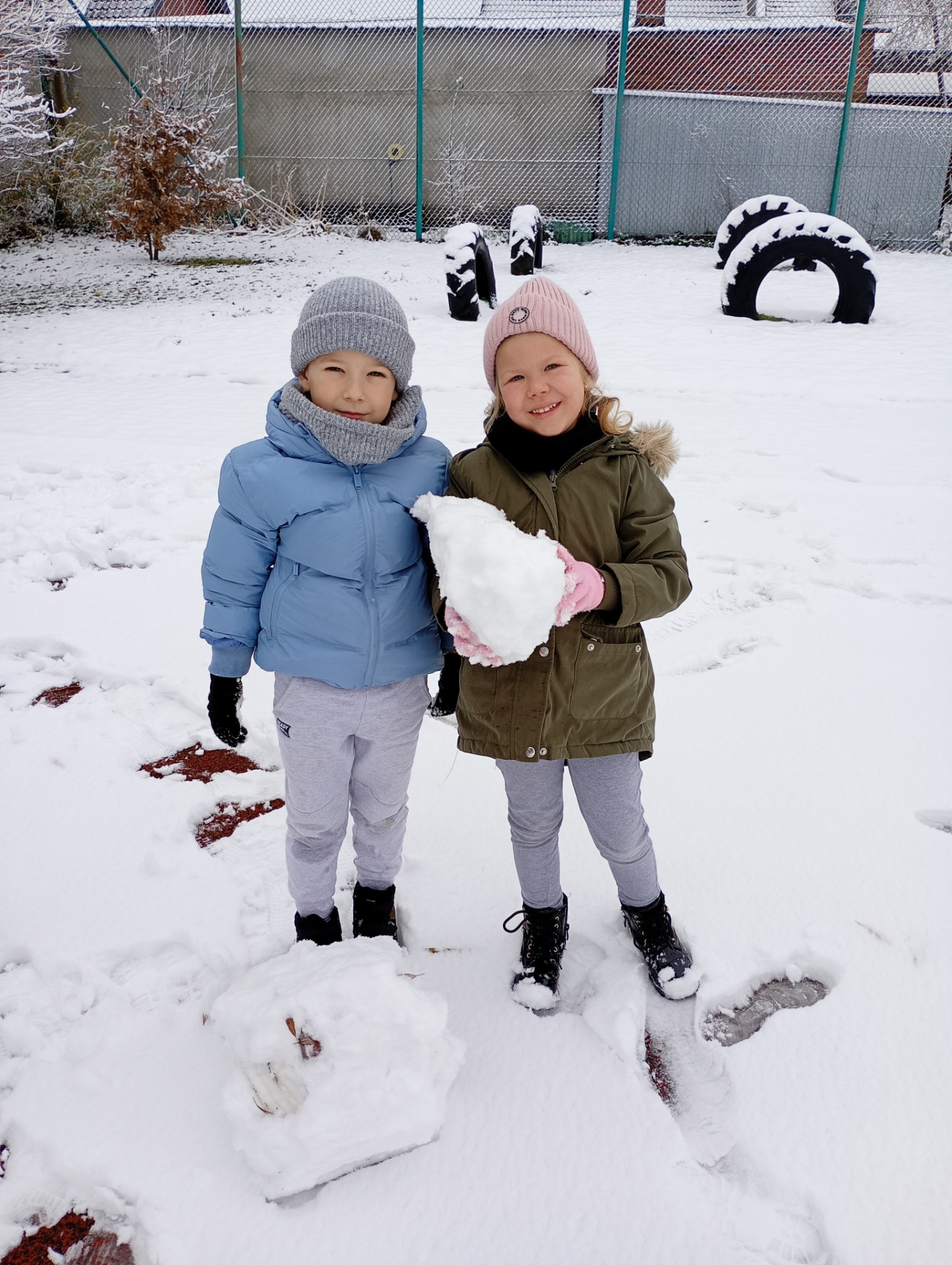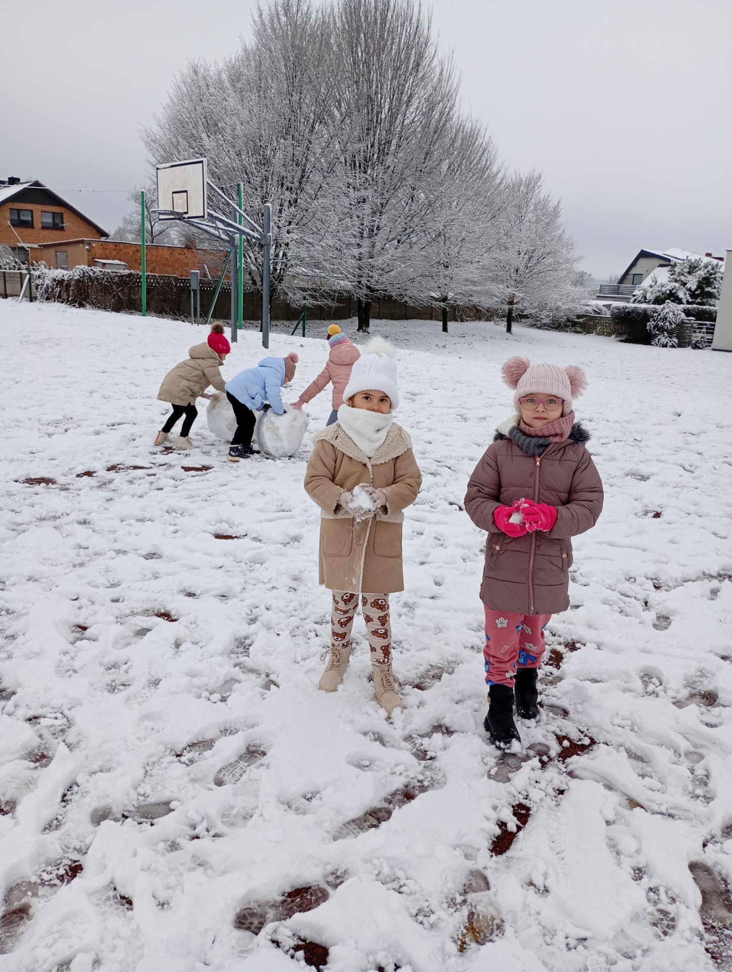 Wspólna zabawa na śniegu nie tylko dostarczyła mnóstwo uśmiechu, ale także była świetną okazją do rozwijania kreatywności, współpracy oraz aktywności ruchowej na świeżym powietrzu.