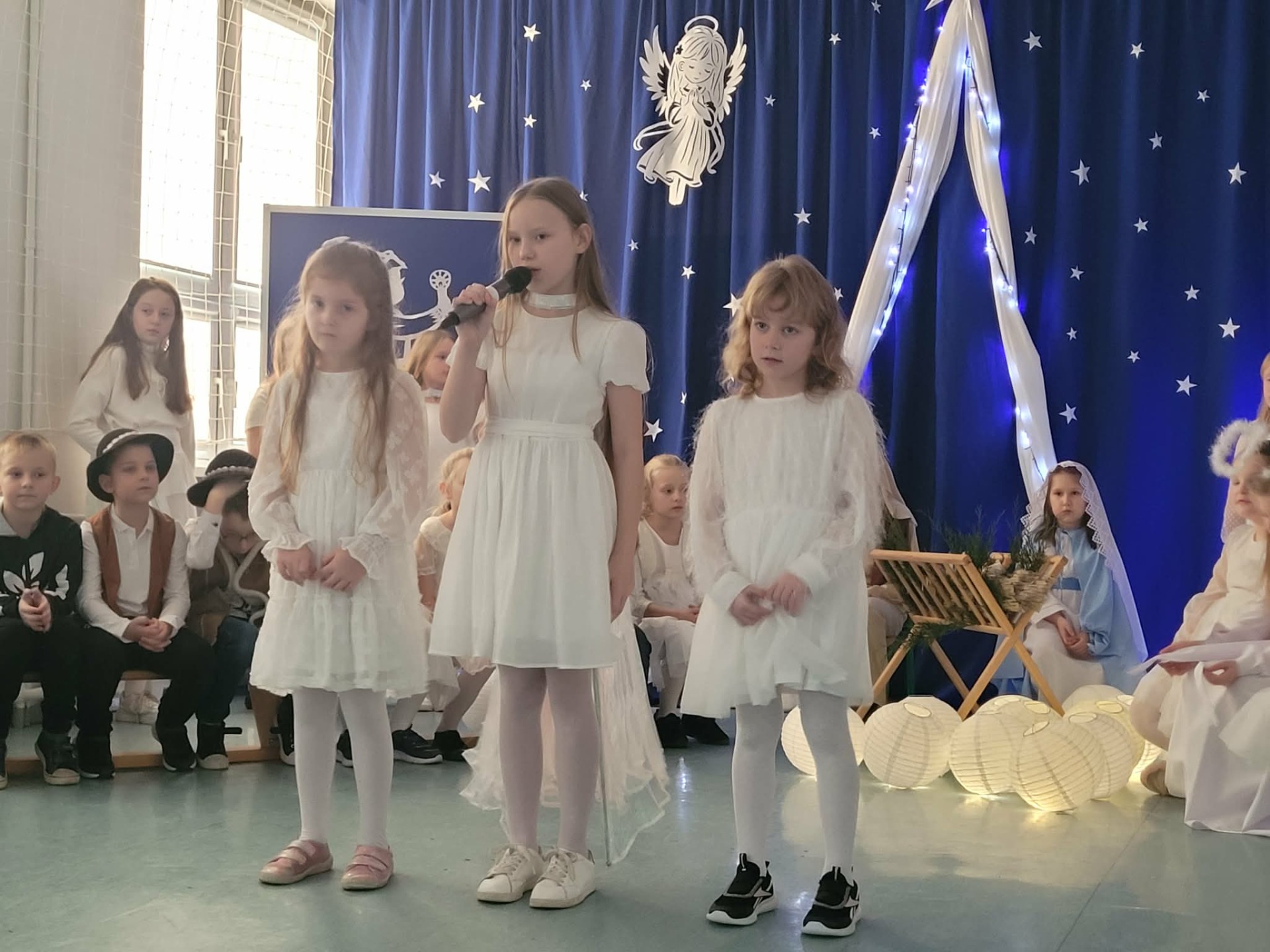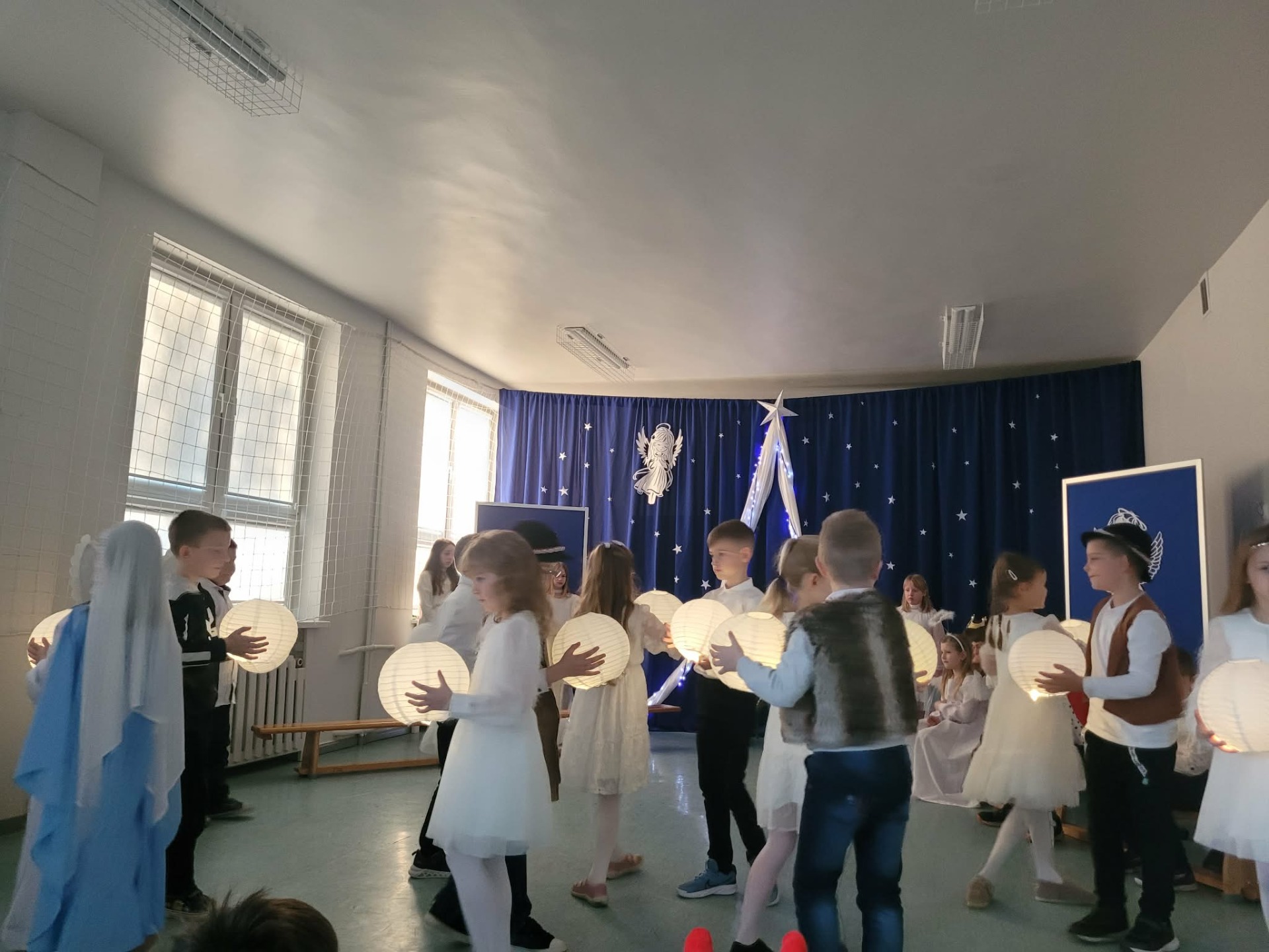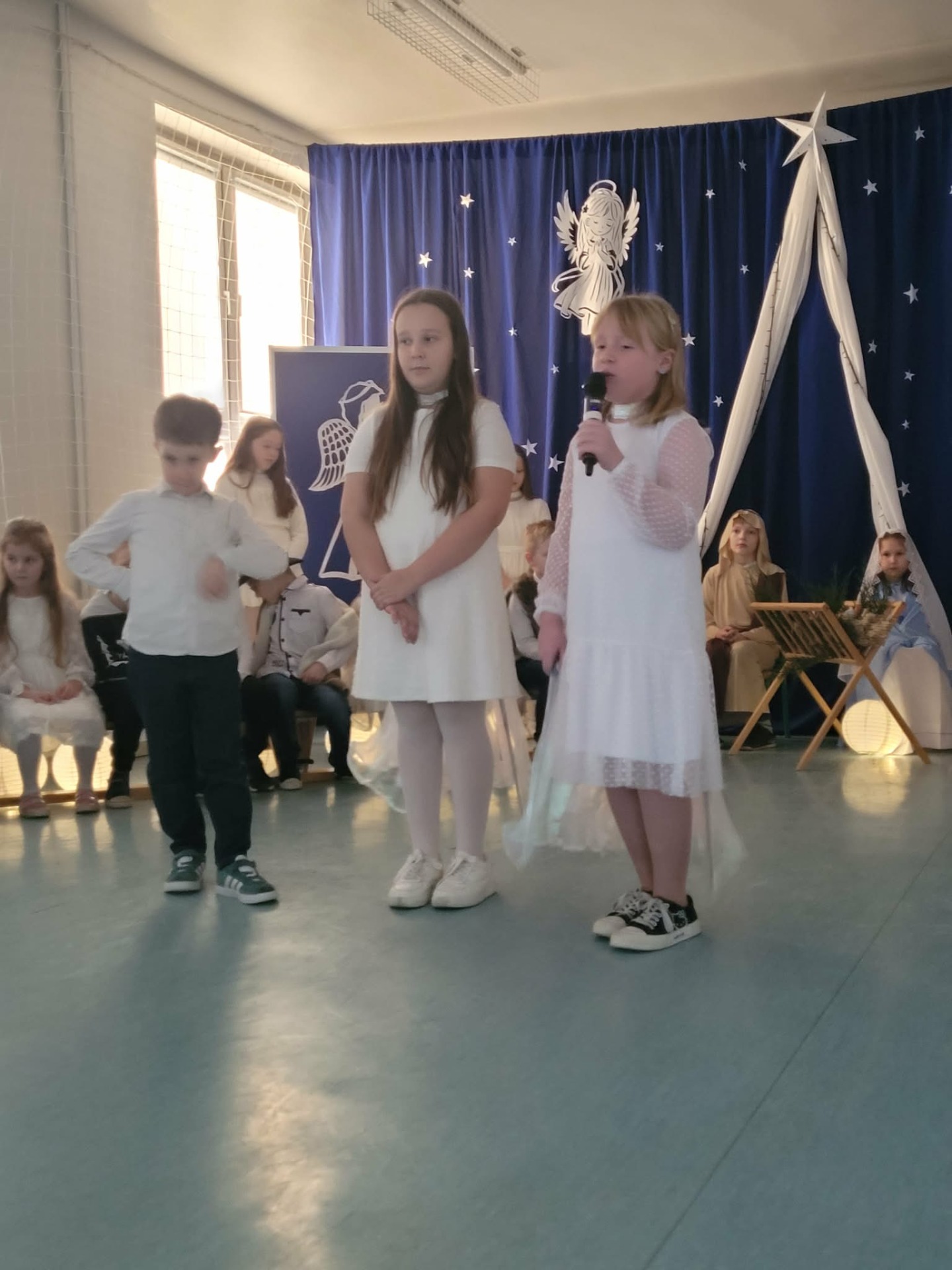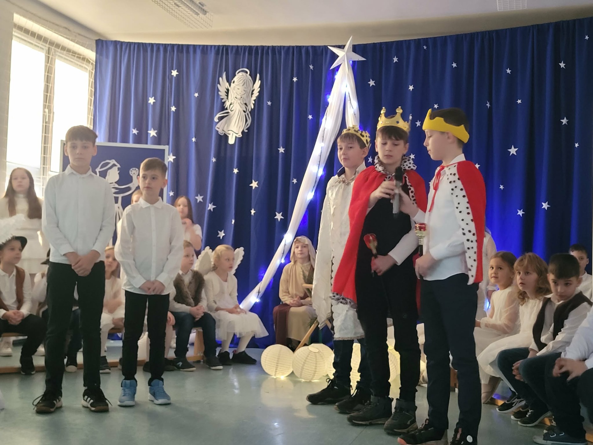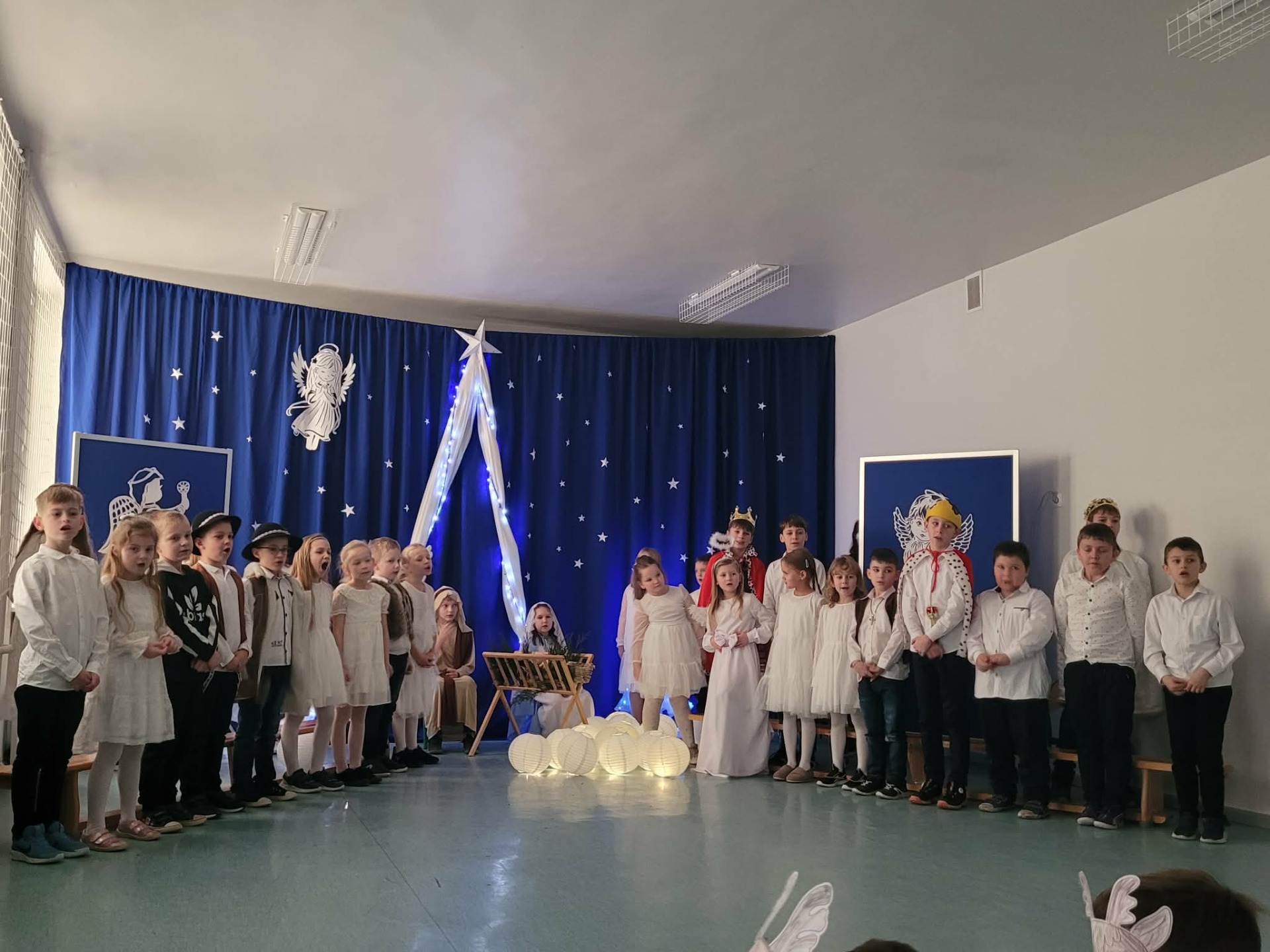 19 grudnia 2025 r. w naszej szkole odbyły się Jasełka szkolne, przygotowane przez uczniów klasy I i IV. Młodzi artyści zaprezentowali piękny program artystyczny, który wprowadził całą społeczność szkolną w świąteczny nastrój. Występ uświetniły piękne kolędy, nastrojowy taniec z lampionami oraz niezwykle efektowny taniec skrzydlatych aniołów, który zachwycił publiczność. Całość przedstawienia była pełna ciepła, radości i świątecznej magii. Serdecznie dziękujemy uczniom za zaangażowanie i trud włożony w przygotowanie tego wyjątkowego wydarzenia.