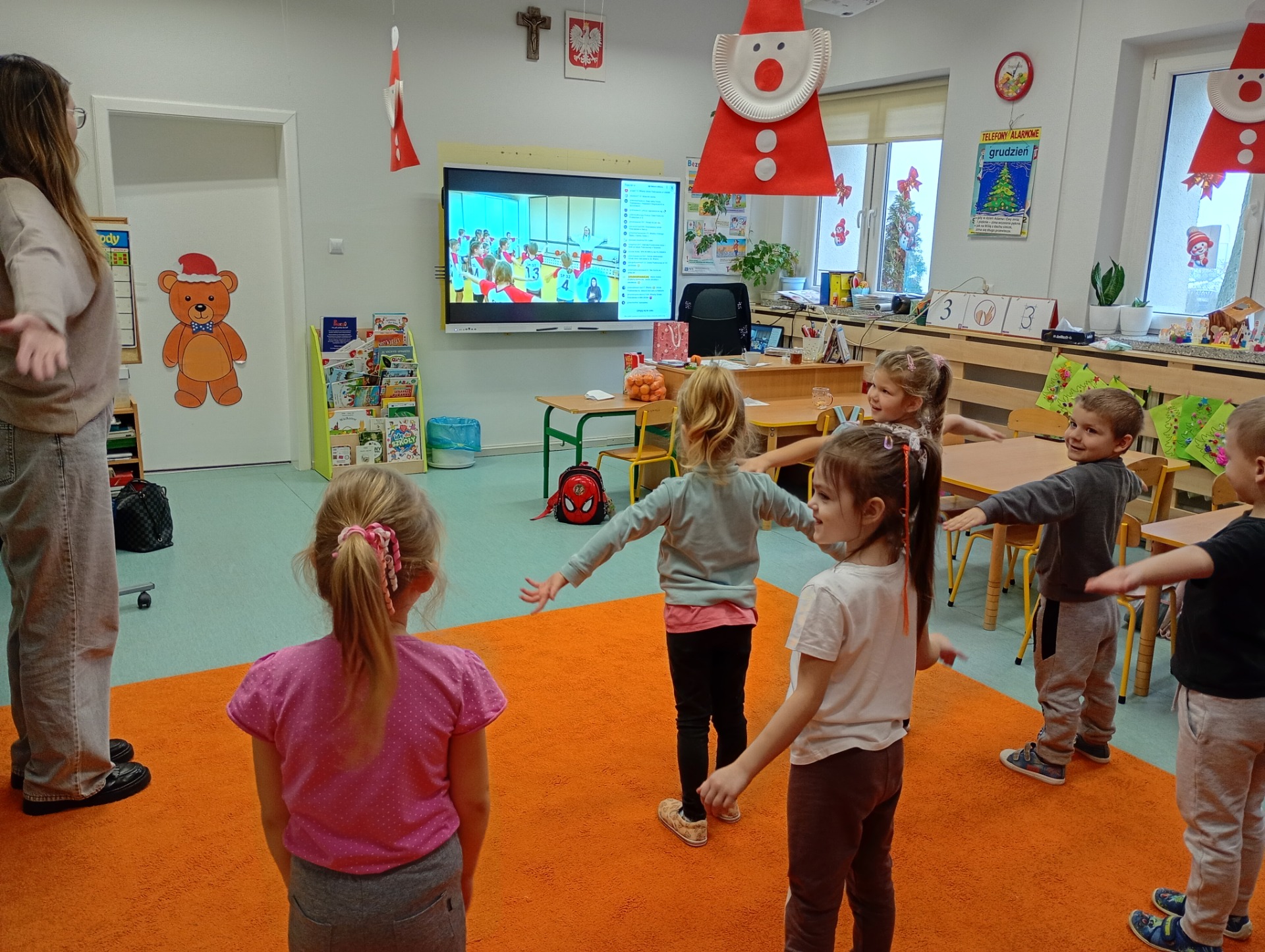 18 grudnia 2025 r. o godz. 10.00 dzieci z przedszkola wzięły udział w ogólnopolskim wydarzeniu online – Integracyjnym WF-ie „Tajemnica Świątecznej Fabryki”. Zajęcia zostały zorganizowane z okazji Międzynarodowego Dnia Osób z Niepełnosprawnościami.