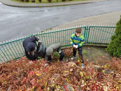 Sprzątanie wokół figury Serca Jezusowego